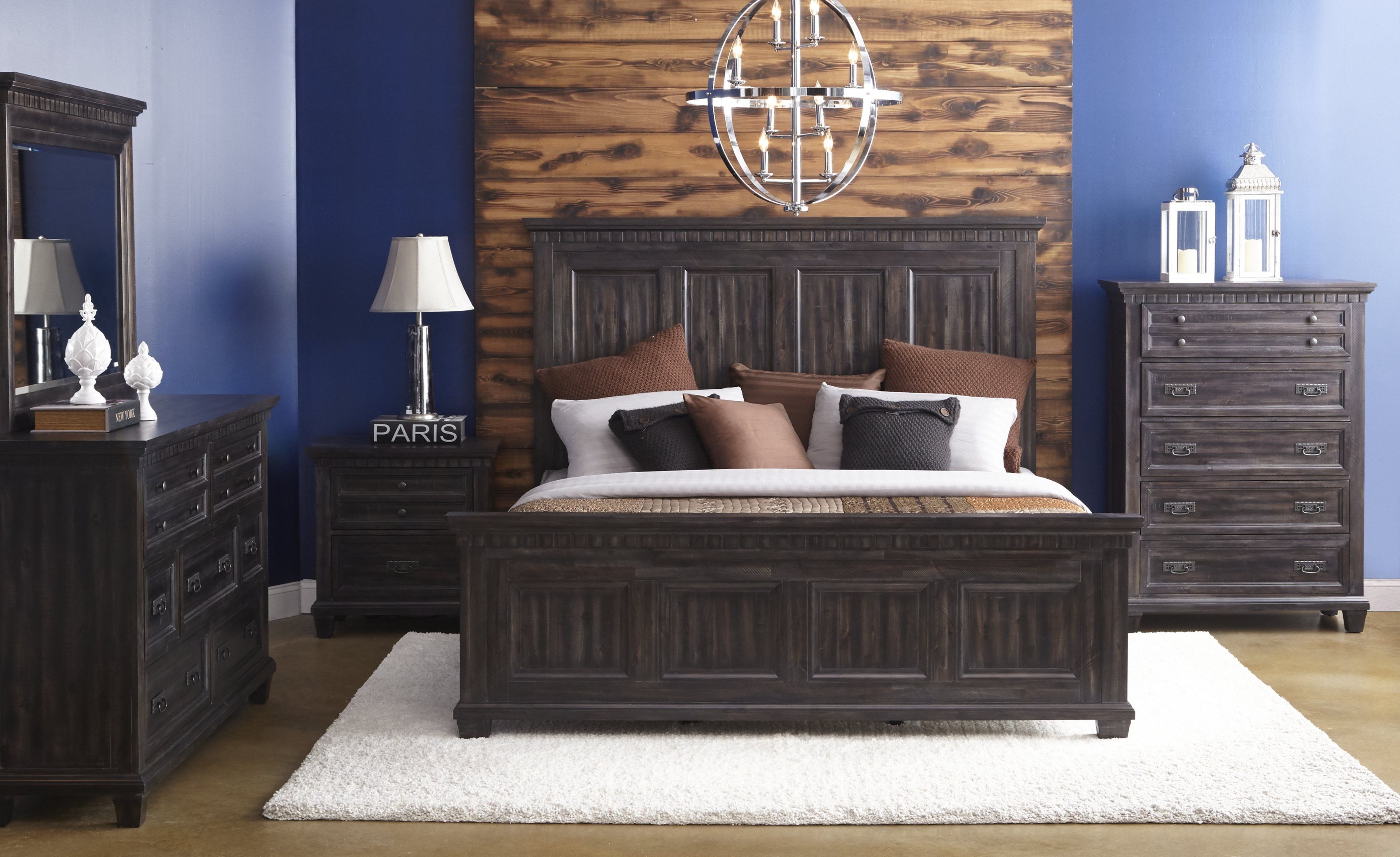 Morrison master bedroom boasts sultry sophistication with its beautifully worn finish, special features, and an unbeatable price! Featuring a bottom nightstand light for a soft glow at the end of the day, hidden storage in all case pieces to keep your most valued possessions safe, cedar lined bottom drawers to protect your clothes, and a gorgeous smokey gray oak finish to complete the look.