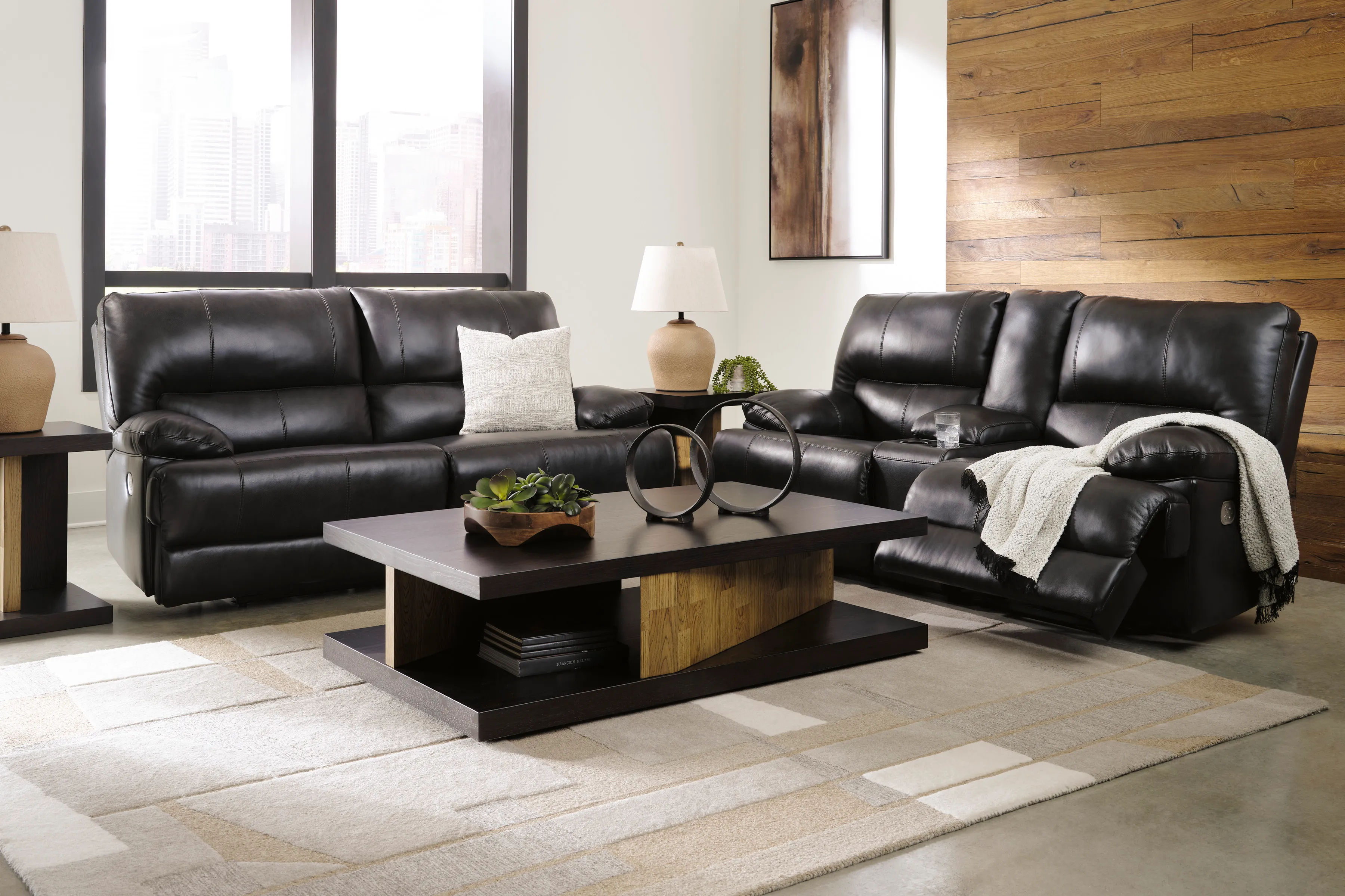 Striking form, meet contemporary function. The Mountainous power reclining sofa combines your ideal comfort features, like one-touch reclining and adjustable headrests, into one sophisticated package. With a design defined by the luxe look of black leather, this sofa pairs beautifully with your uncompromisingly posh aesthetic.