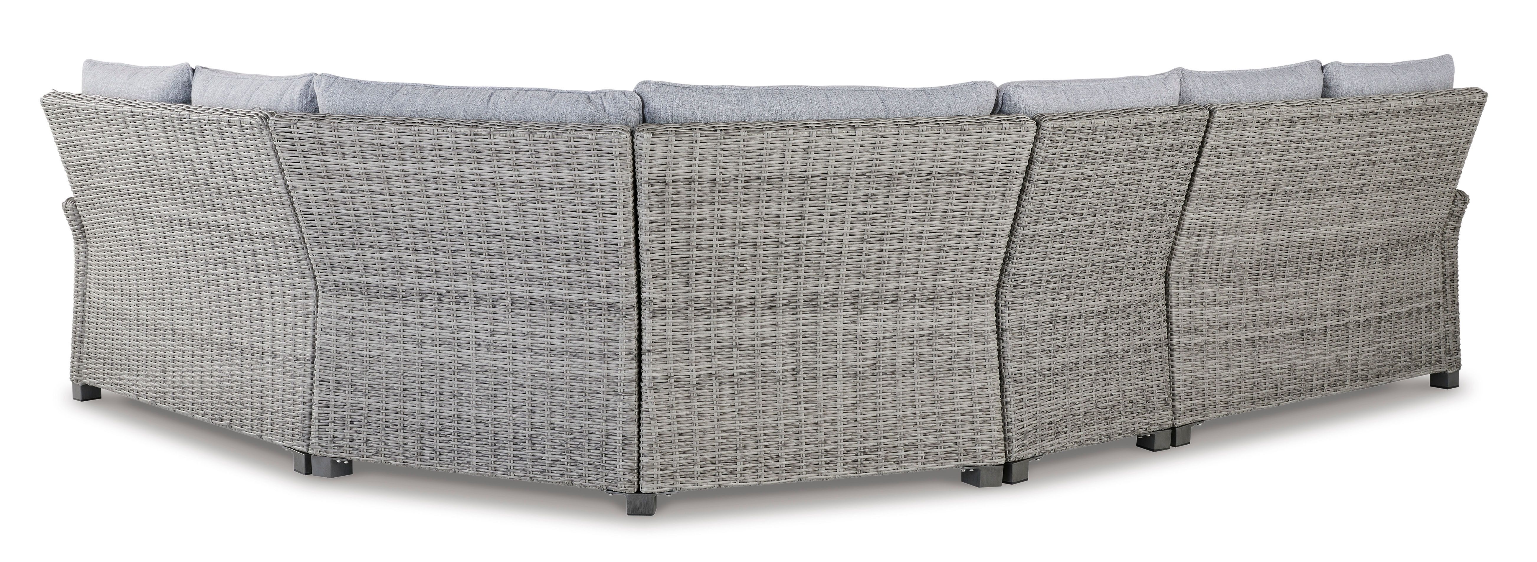 • Includes outdoor armless chair with cushion, left-arm facing loveseat with cushion, right-arm facing loveseat with cushion and corner with cushion