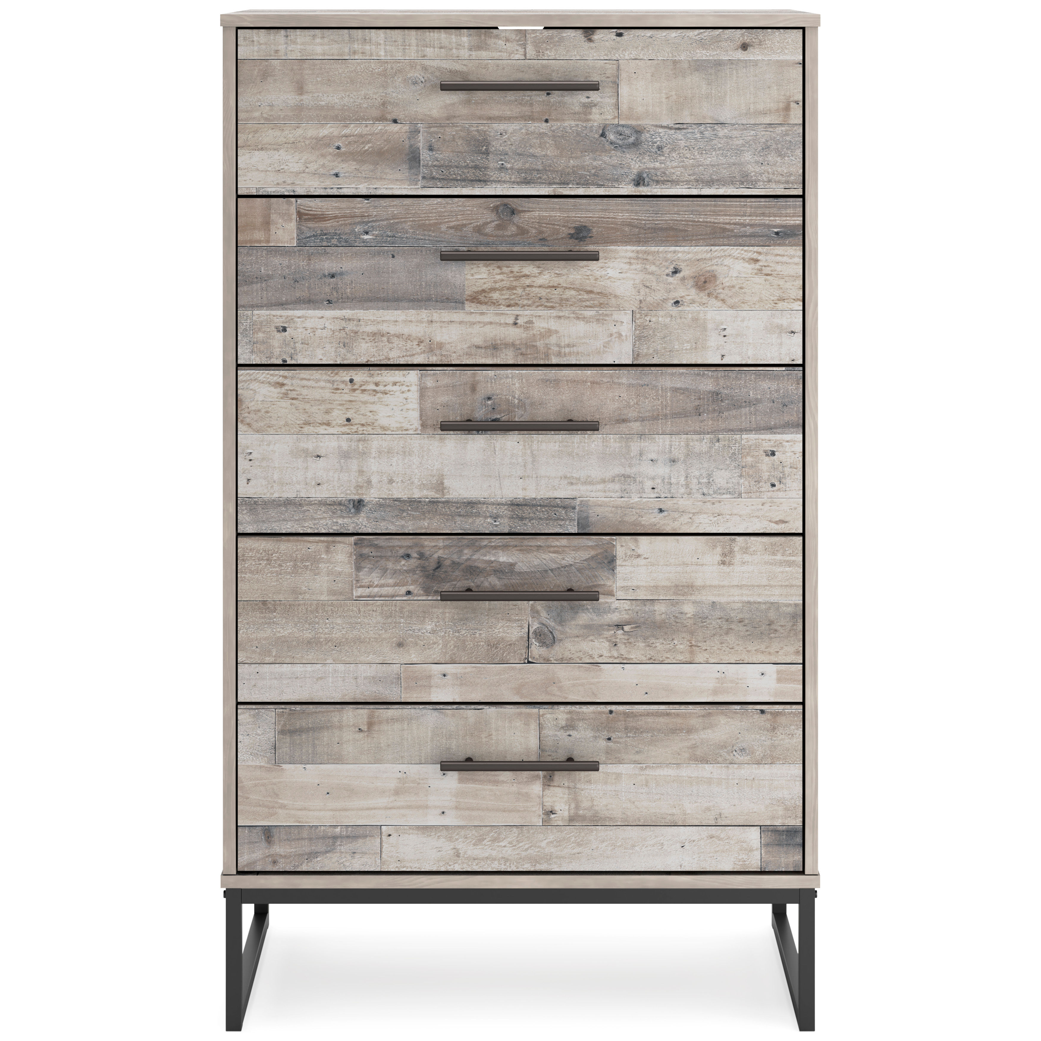 Part beach chic, part urban hip, the Neilsville chest of drawers is everything you dreamed of, at a comfortably cool price. The butcher block whitewash finish over replicated pine grain lends a richly relaxed aesthetic that suits your sensibility. Dark pewter-tone drawer pulls and sled legs add a high design element. What an easy-breezy choice for a naturally beautiful bedroom retreat.