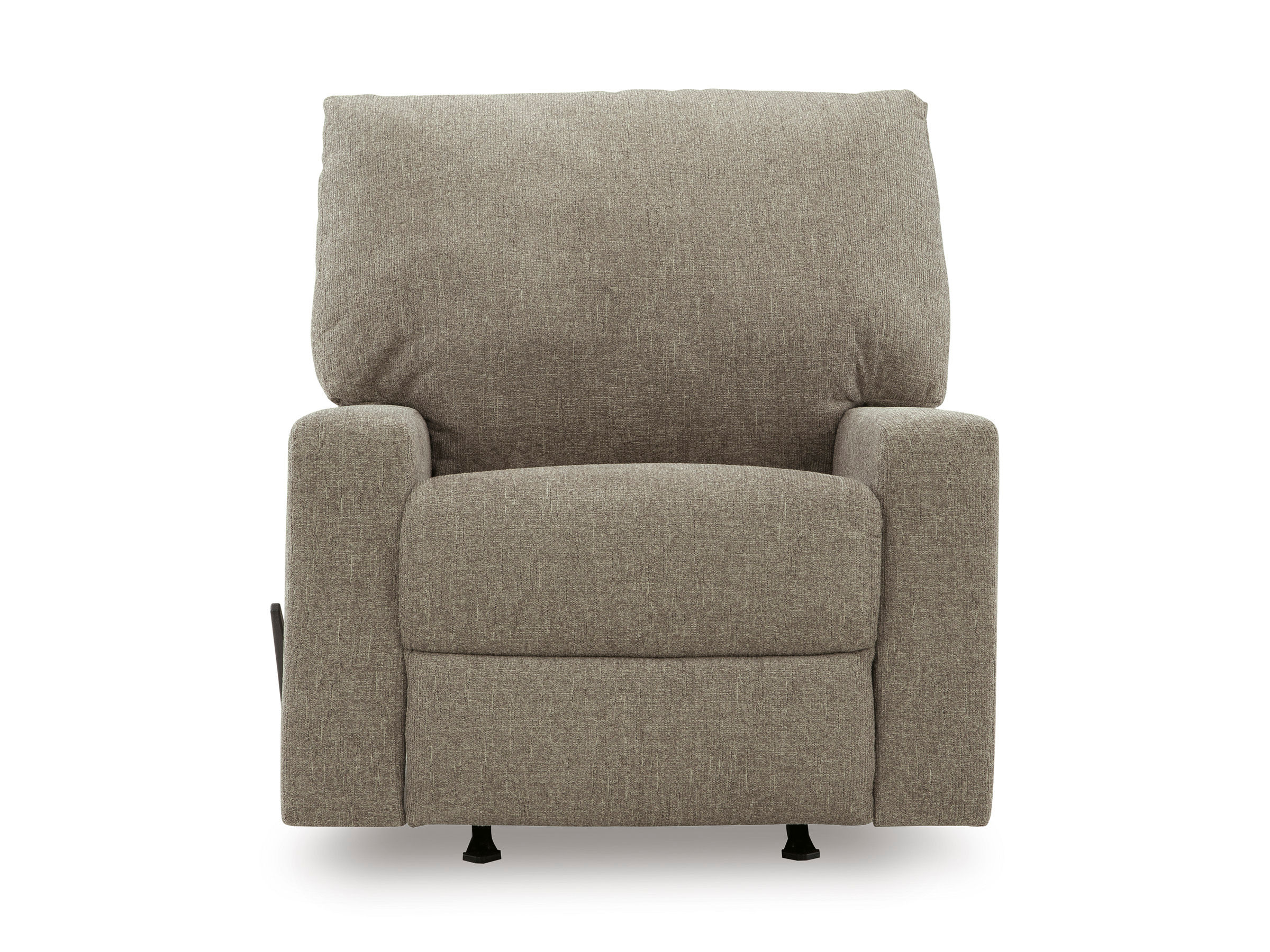 Classic comfort meets modern design with the Newellen rocker recliner in brown fabric upholstery.