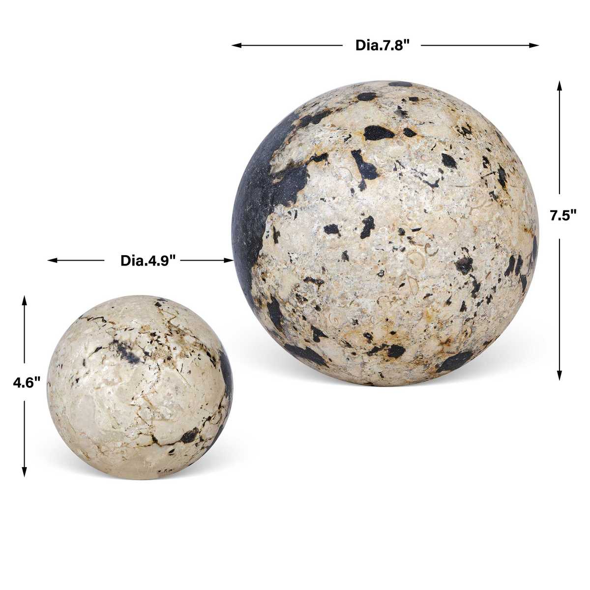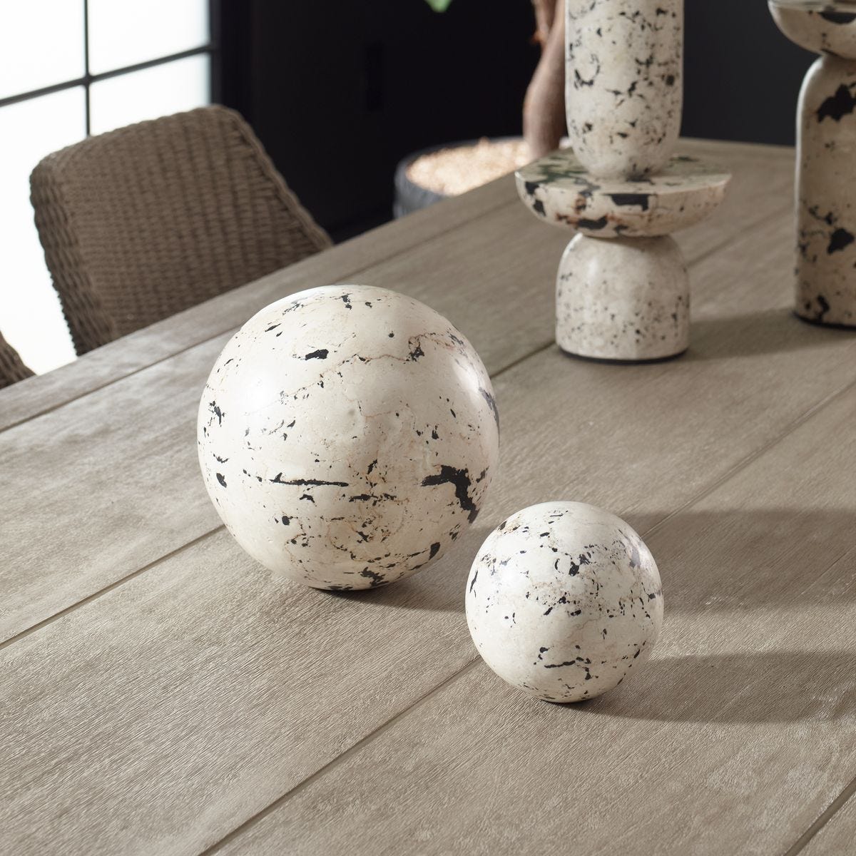 Inspired by the clean lines and bold feel of modern art, this set of decorative balls is handcrafted from coral stone with black resin accents. Safe for outdoor use, but protection from freezing temperatures is recommended.