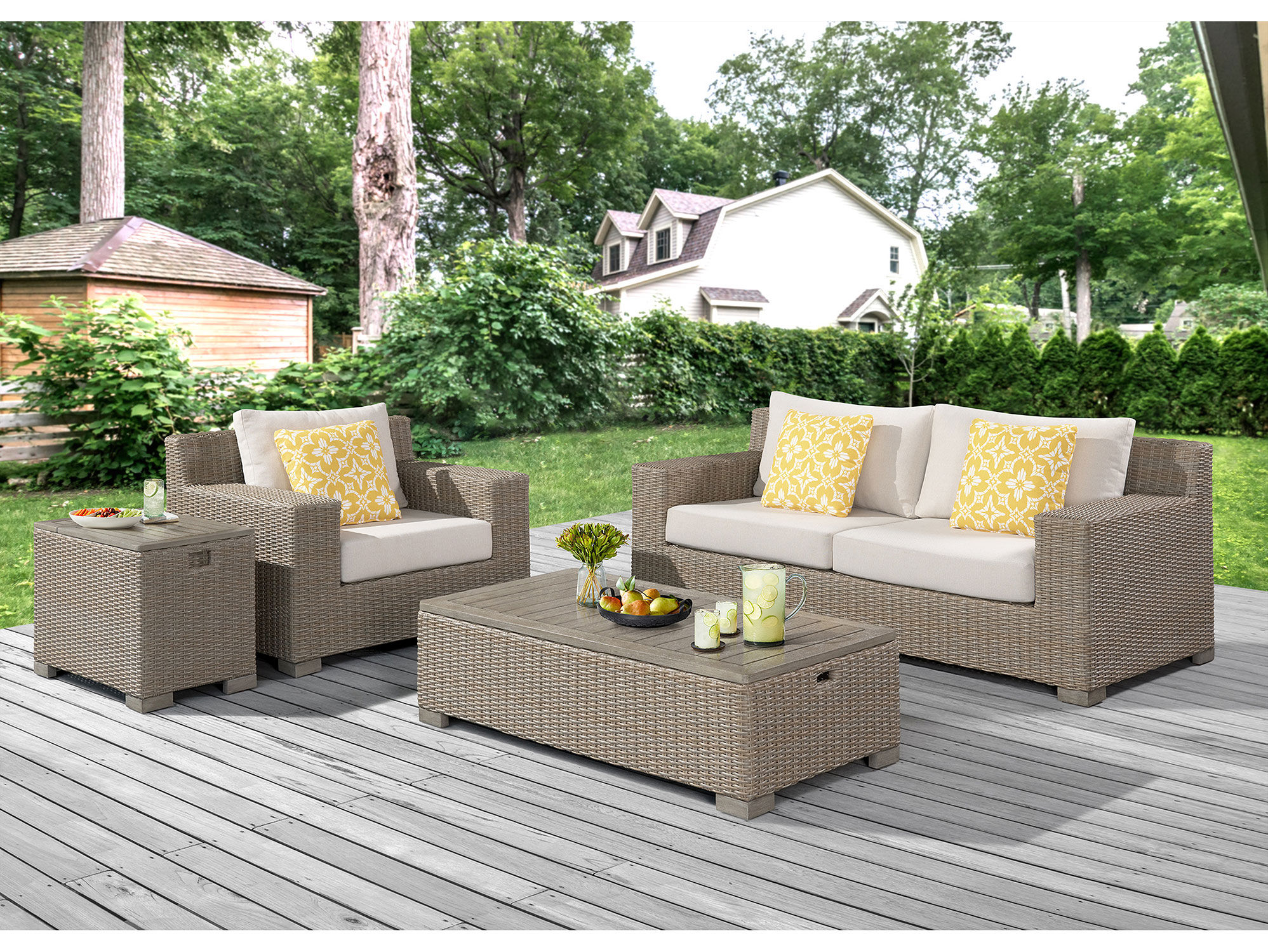 Create a stunning retreat in your patio area with the stylish Ollie outdoor coffee table, made with a beige finish. This neutral piece will blend in perfectly with the existing pieces in your outdoor space.