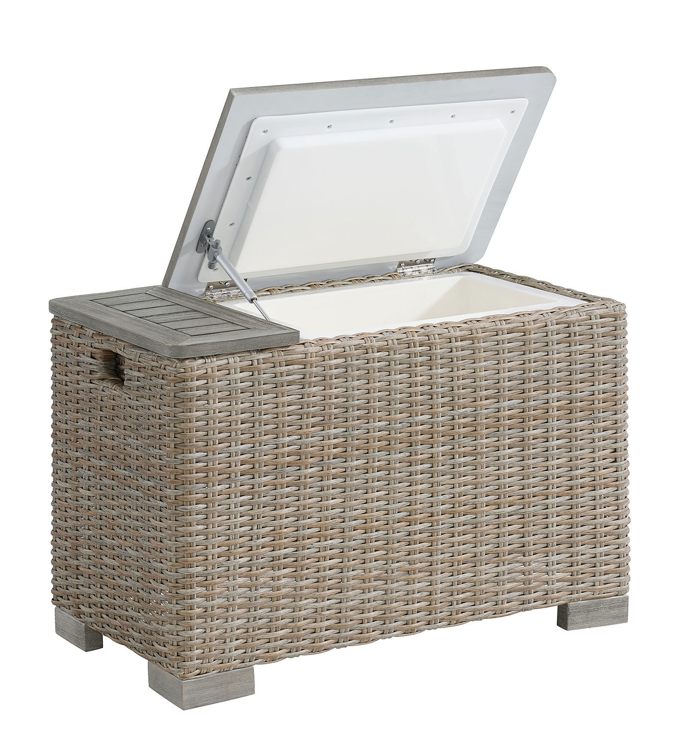 Create a stunning retreat in your patio area with the stylish and functional Ollie outdoor cooler box, made with a beige finish. This neutral piece will blend in perfectly with the existing pieces in your outdoor space. The integrated ice box storage compartment with a drain plug will keep your favorite drinks and refridgerated snacks cool.