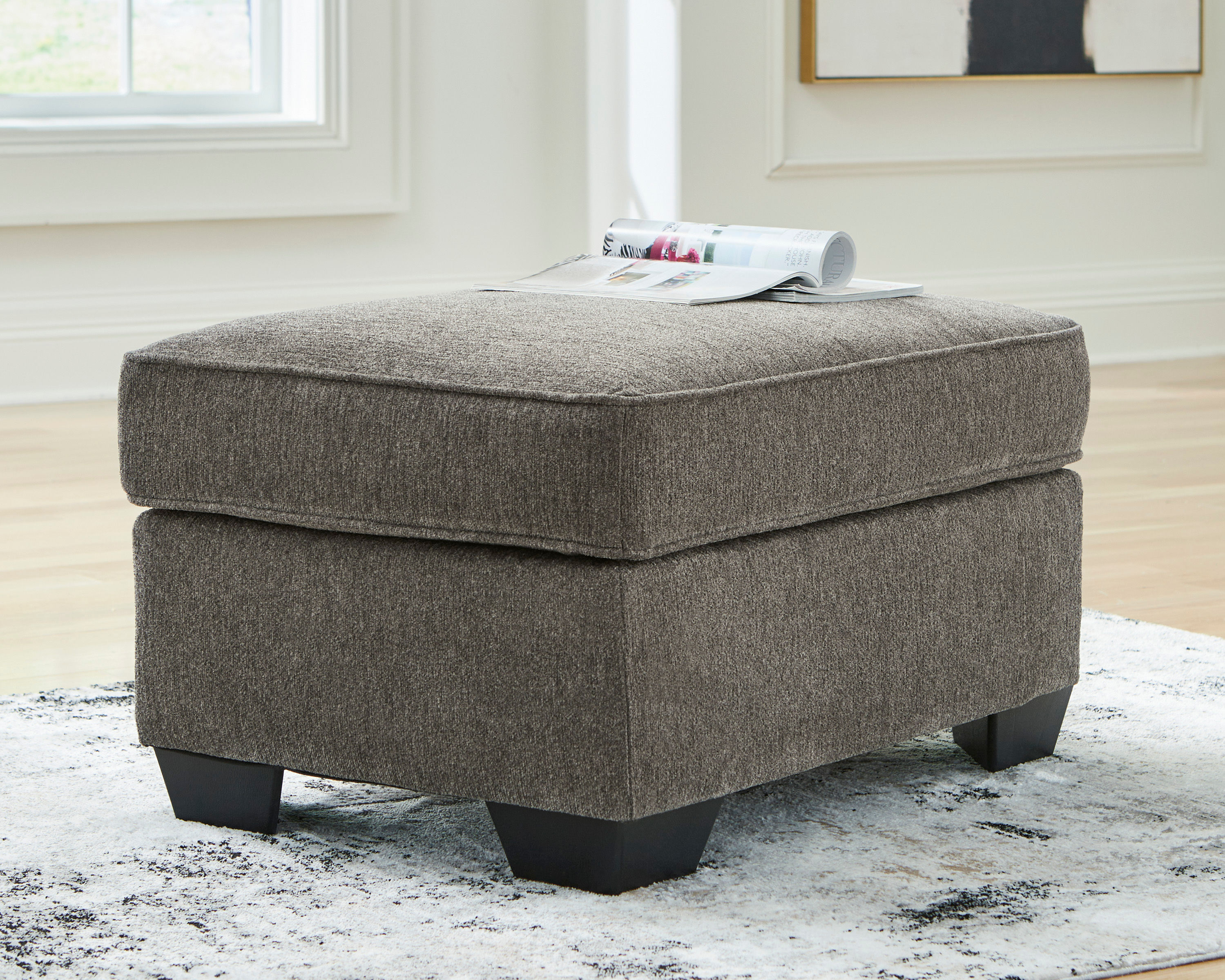 Contemporary aesthetics meet indulgent comfort with the Olten ottoman in graphite gray.