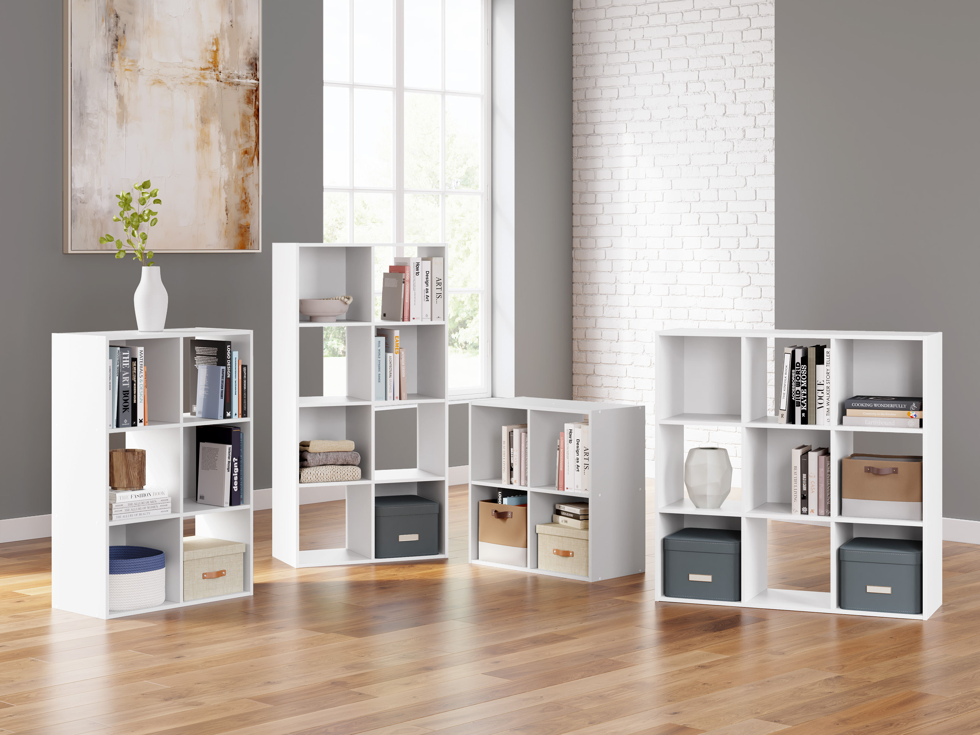 Minimalist design meets modern style with the Onita four-cube organizer in a solid white finish.