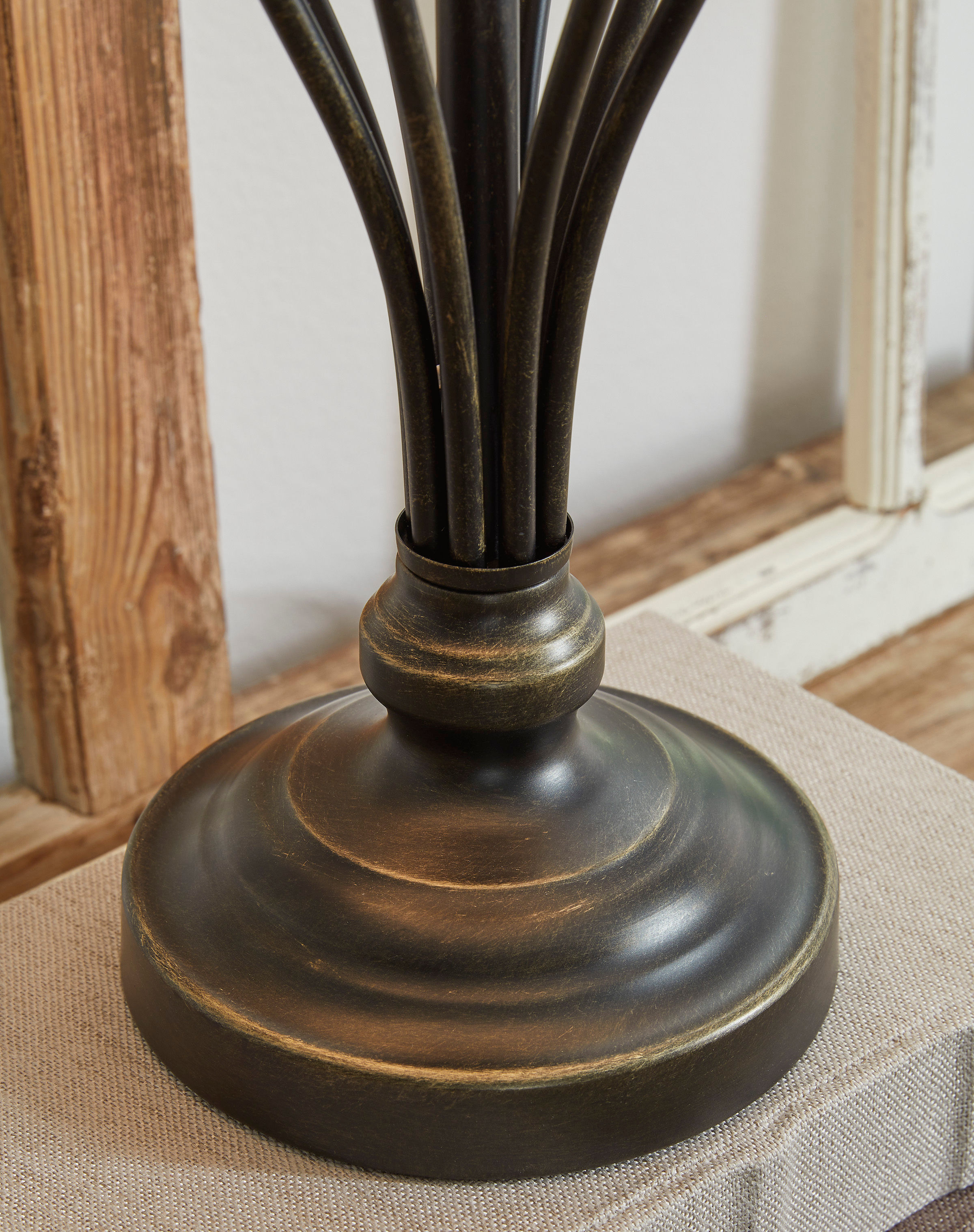 • Antiqued bronze-tone finish