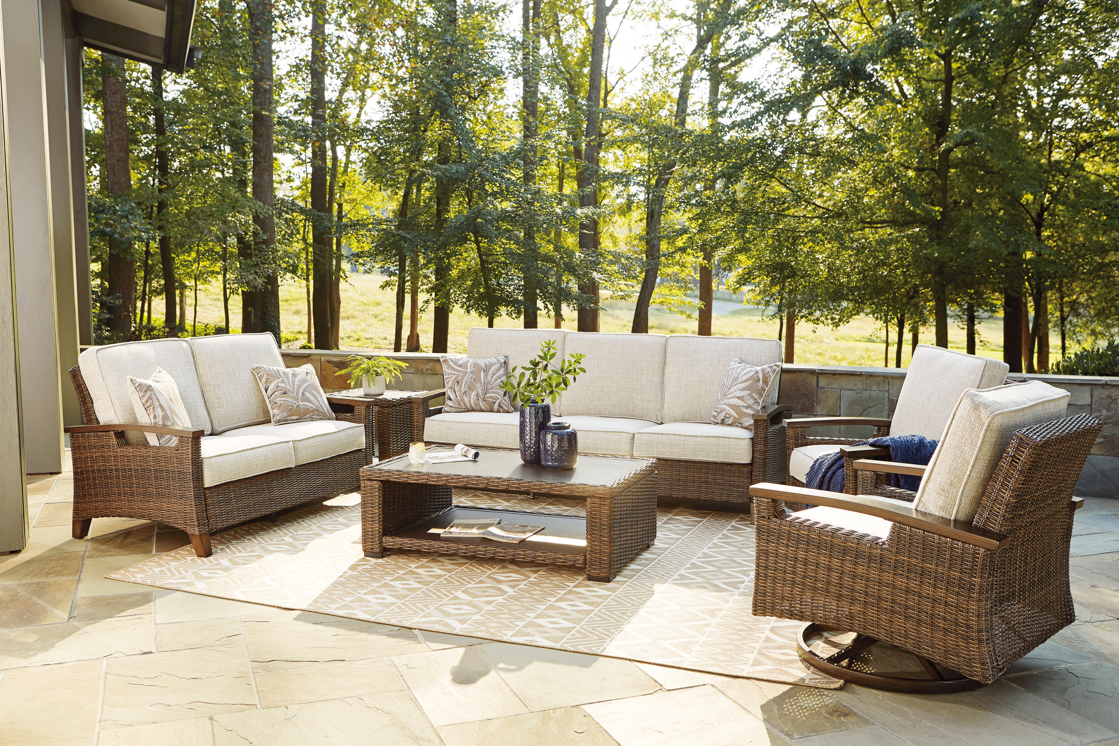 • All-weather, handwoven resin wicker over rust-proof aluminum frame