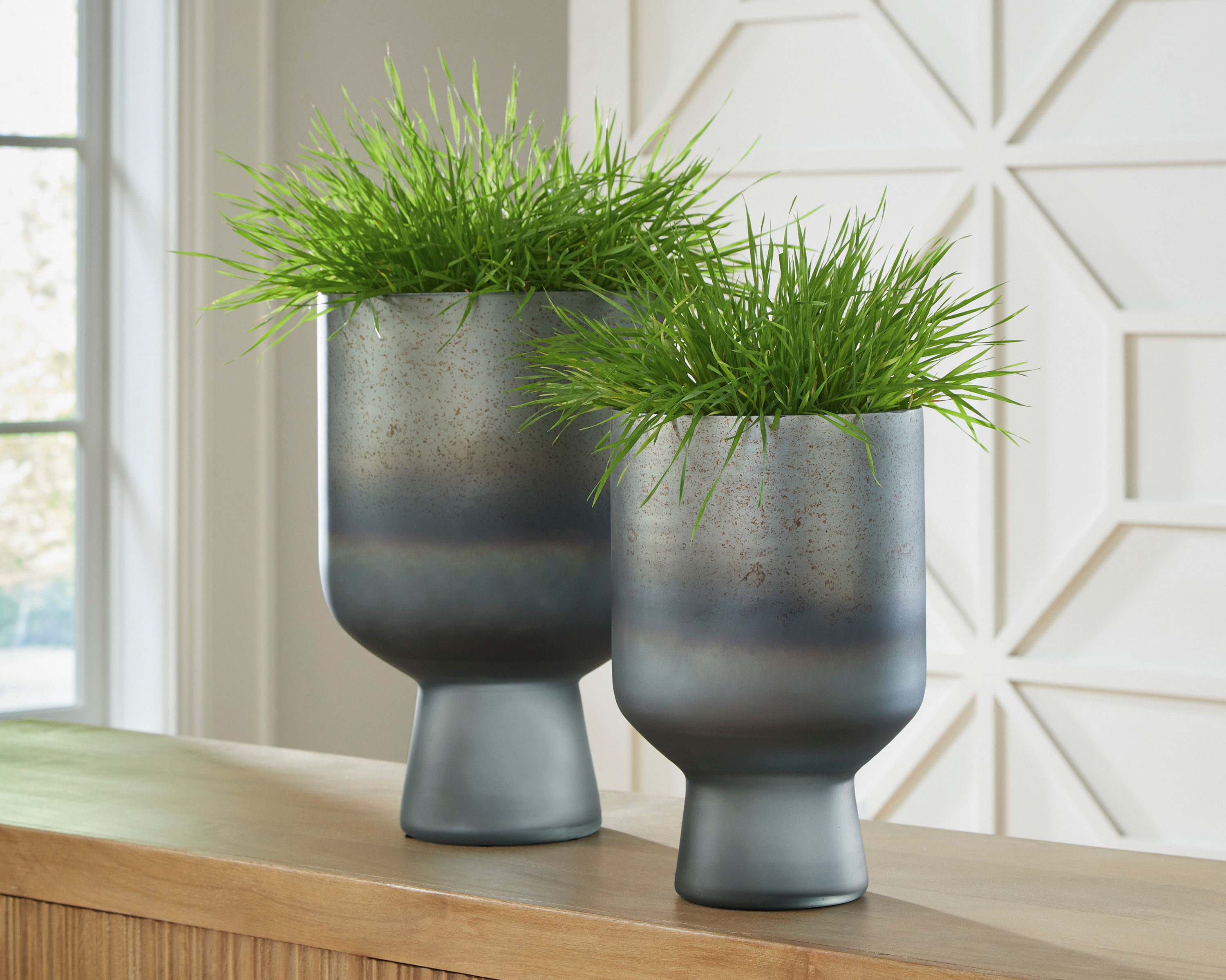 • Antiqued blue finish
