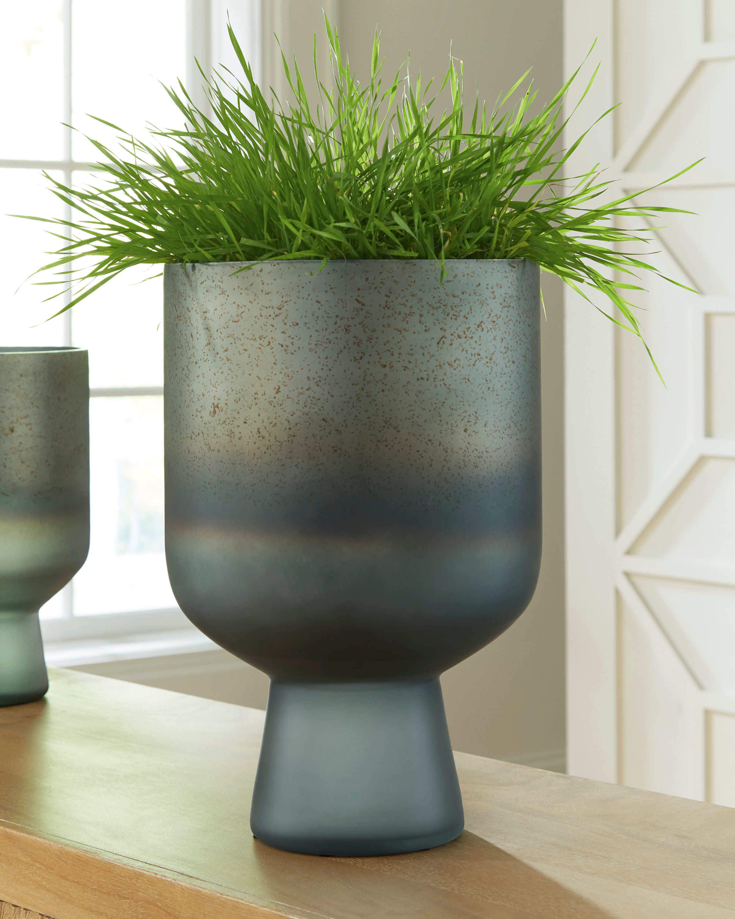 If relaxed is your style, this is your vase. Its casual design and antiqued blue finish are ideal for your laid-back lifestyle. Fill it with your favorite faux or dried flowers, or let it make a simple statement on its own, enhancing a tabletop, mantel or bookshelf.