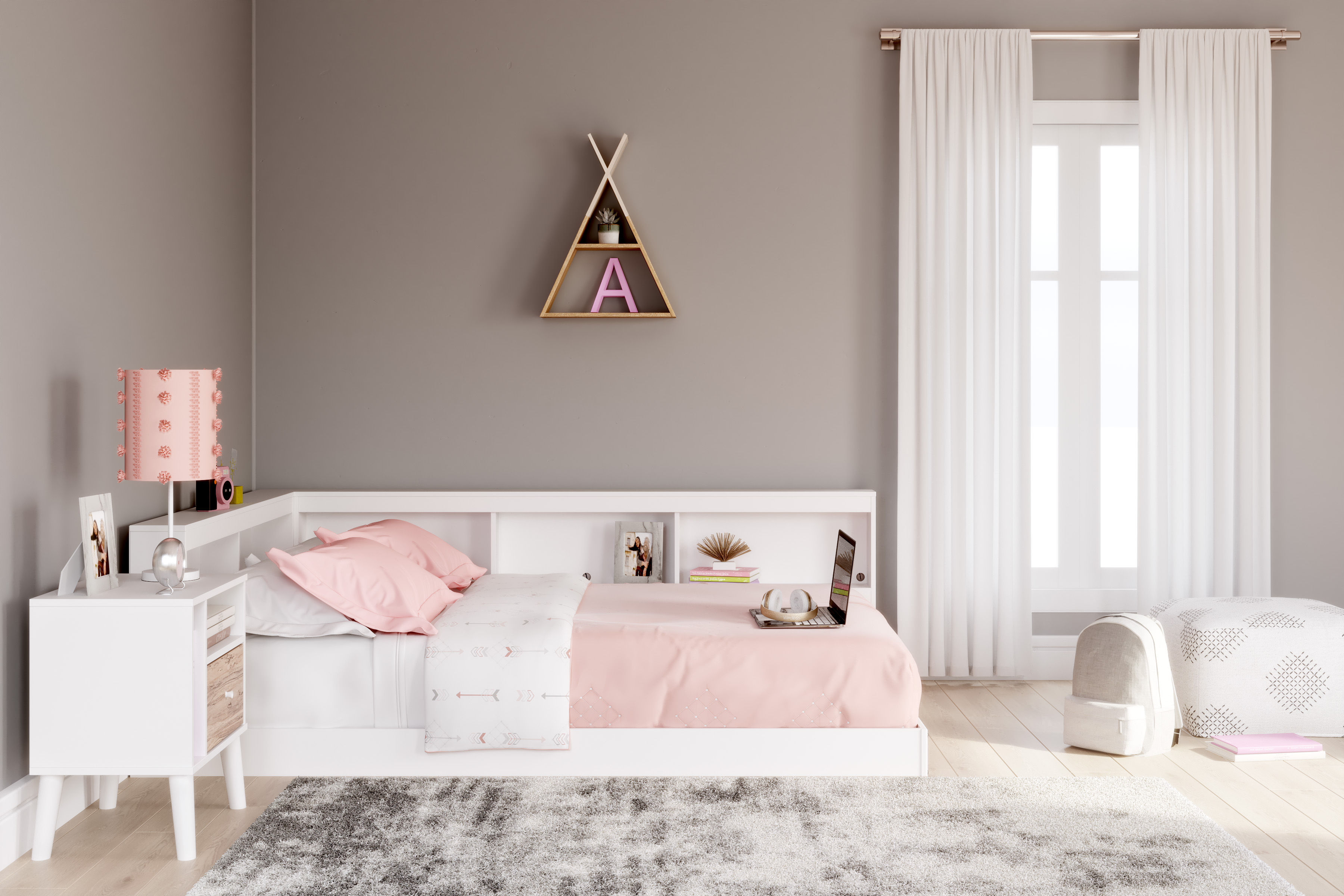 Simple with a contemporary charm, the Piperton full bookcase bed has a matte white finish.