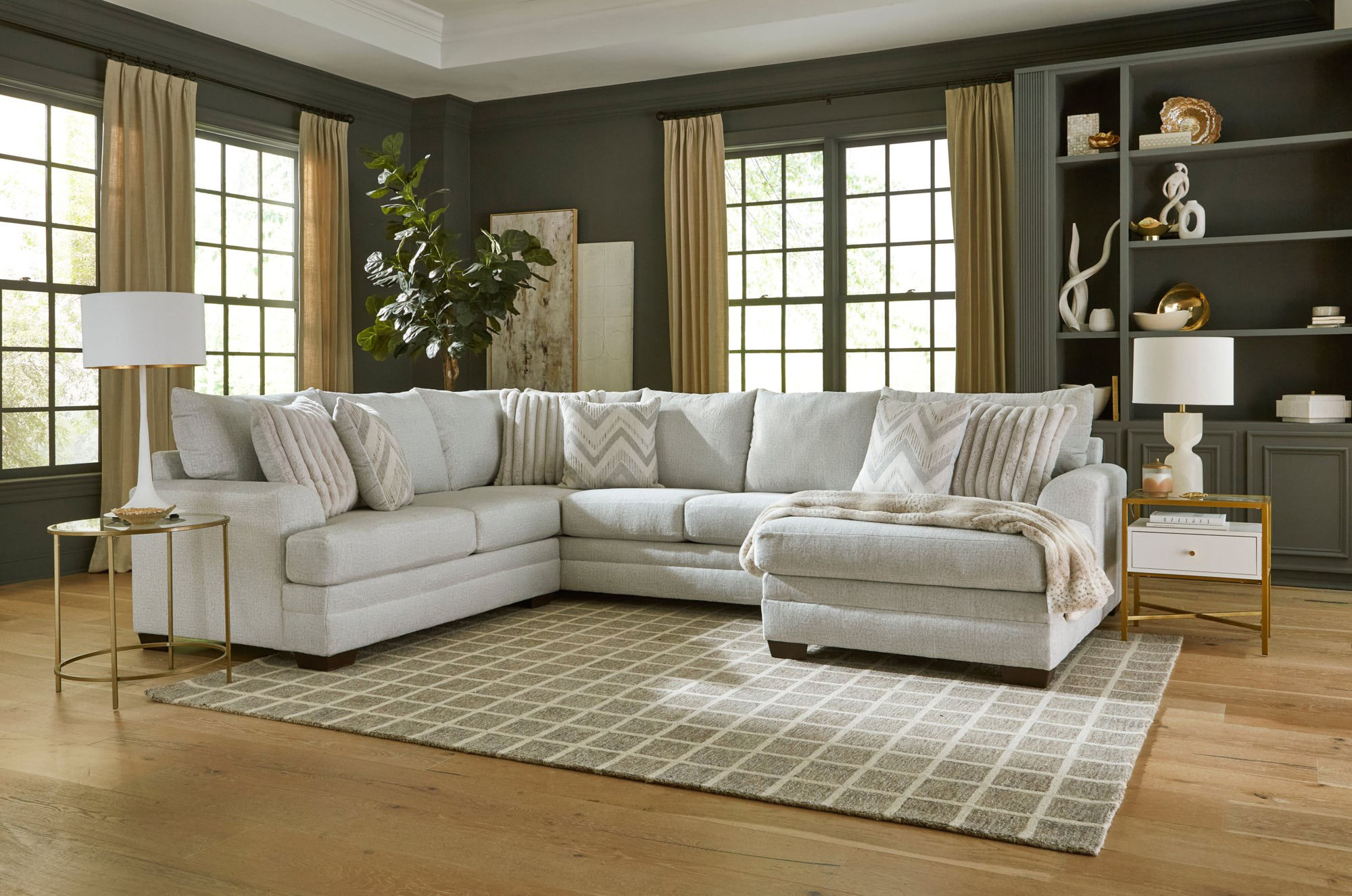 Embrace the contemporary style and comfort of the Pippa Sectional in a light gray upholstery.