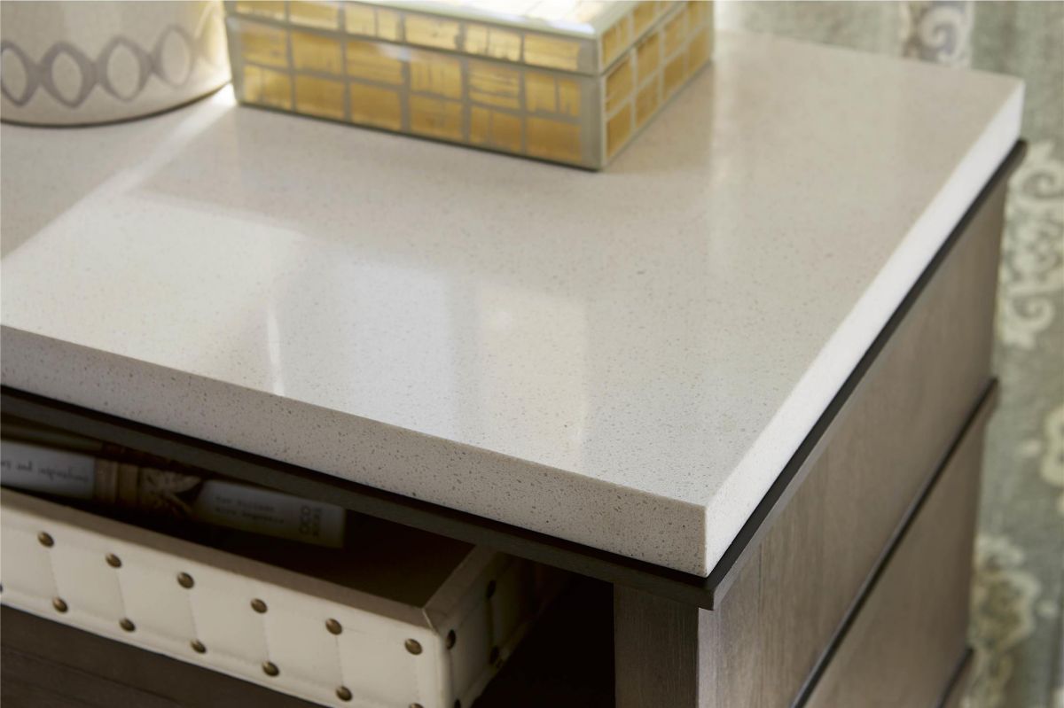 Experience the perfect blend of modern and traditional styling with the Playlist 2-drawer nightstand. The cool brown finish makes it a versatile piece that can fit into any color scheme that you already have in your bedroom.