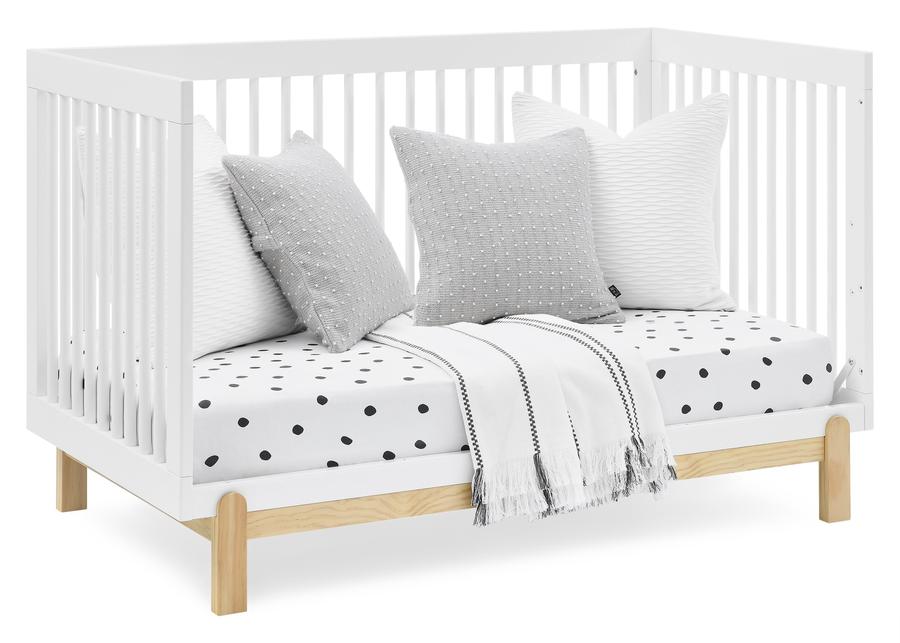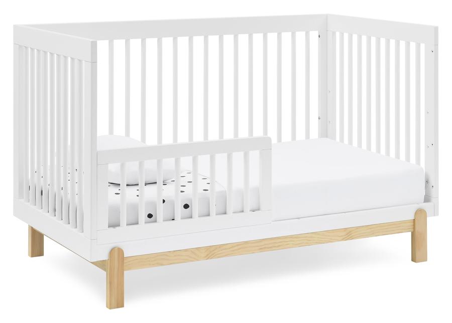 The stylish two-toned Poppy 4-in-1 Convertible Baby Crib by Delta Children will be the centerpiece of your little one’s bedroom for years to come. It’s a timeless, modern crib that features an adjustable height mattress, plus it converts into a toddler bed, daybed and sofa as your child grows (Daybed/Sofa Rail included; Toddler Guardrail #W100725 sold separately). The warm, natural wood tone of this crib’s base and feet is paired with contrasting round spindles to create a modern, sleek style that adapts to all your child’s sleep needs from baby to big-kid. To complete your nursery, pair the Poppy 4-in-1 Convertible Crib with the Poppy 3 Drawer Dresser with Cubbies by Delta Children. Crib is available in Bianca White with Natural, Grey with Natural and Midnight Grey with Natural. Crib mattress not included.