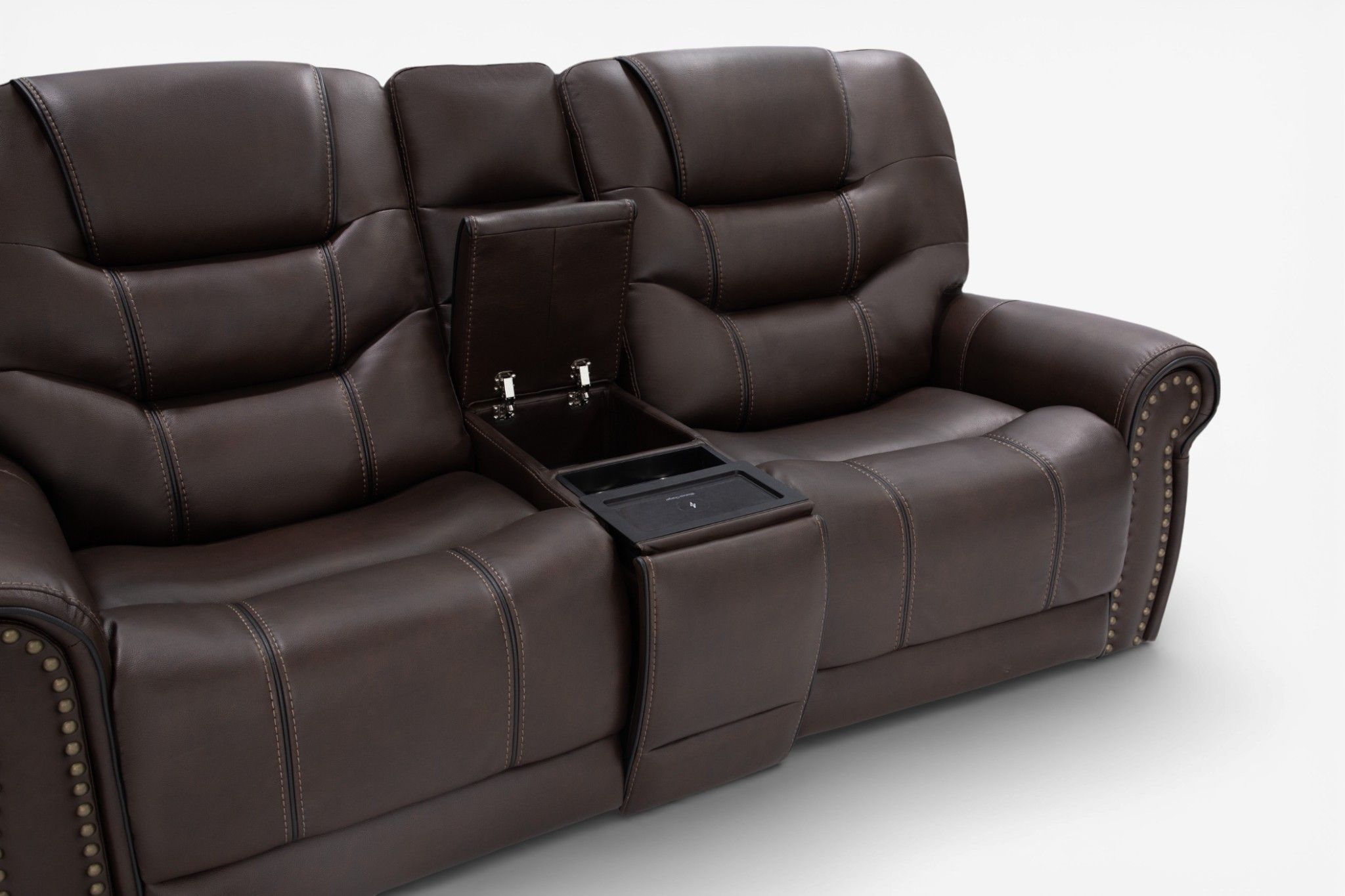 With plush cushioning, durable leather upholstery and nailhead trim, this power reclining loveseat has it all. Relaxation doesn't end with the plush cushioning as this power reclining loveseat also has adjustable headrests and power lumbars that allows you to experienced customized comfort. There are also options for heated seats and a massage feature that will make you never want to get up from your spot. Luckily, you won't have to leave for much as this power reclining loveseat also has cupholders, a storage console and USB ports, that way you can have your everything you need nearby and devices charged and in arms reach.