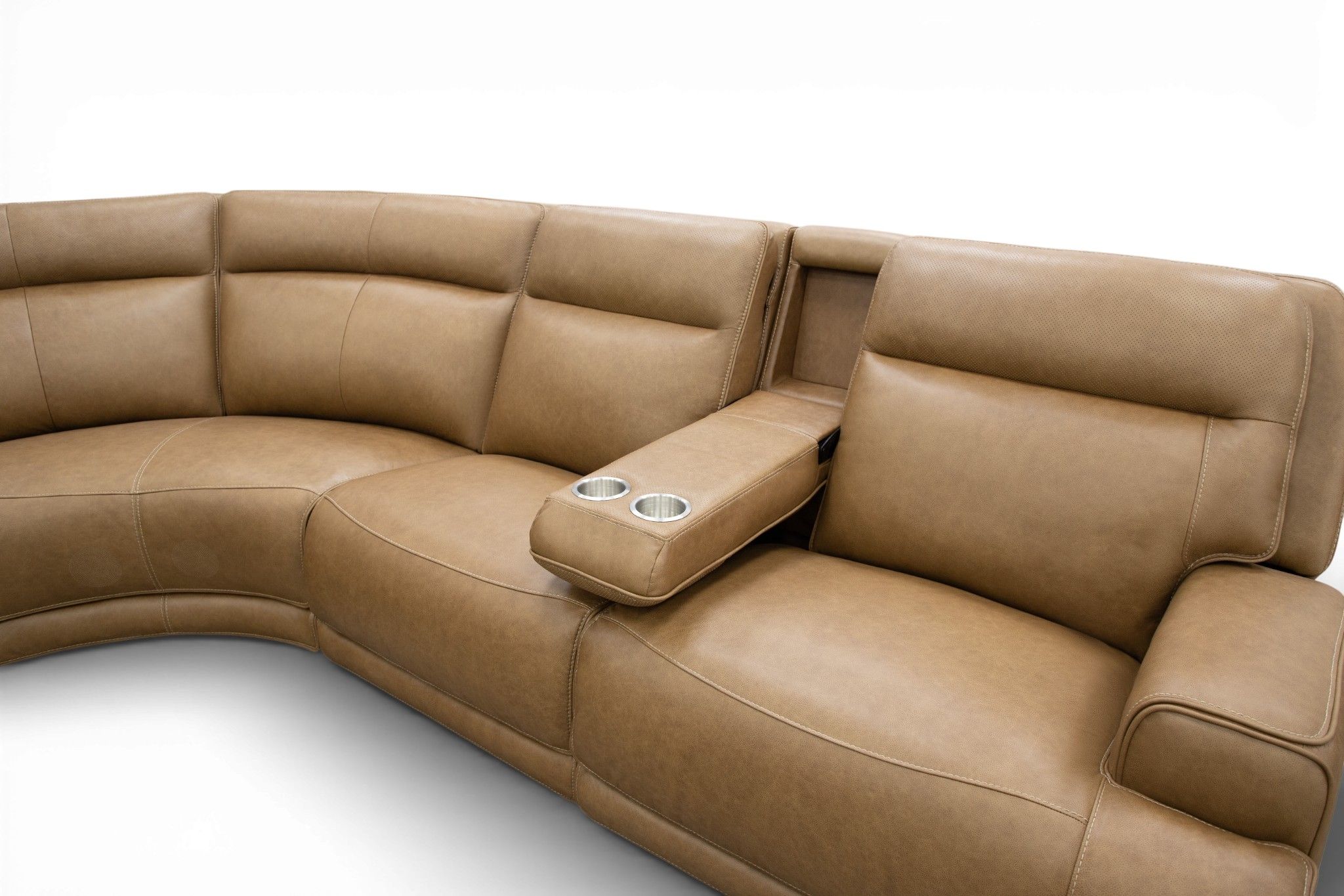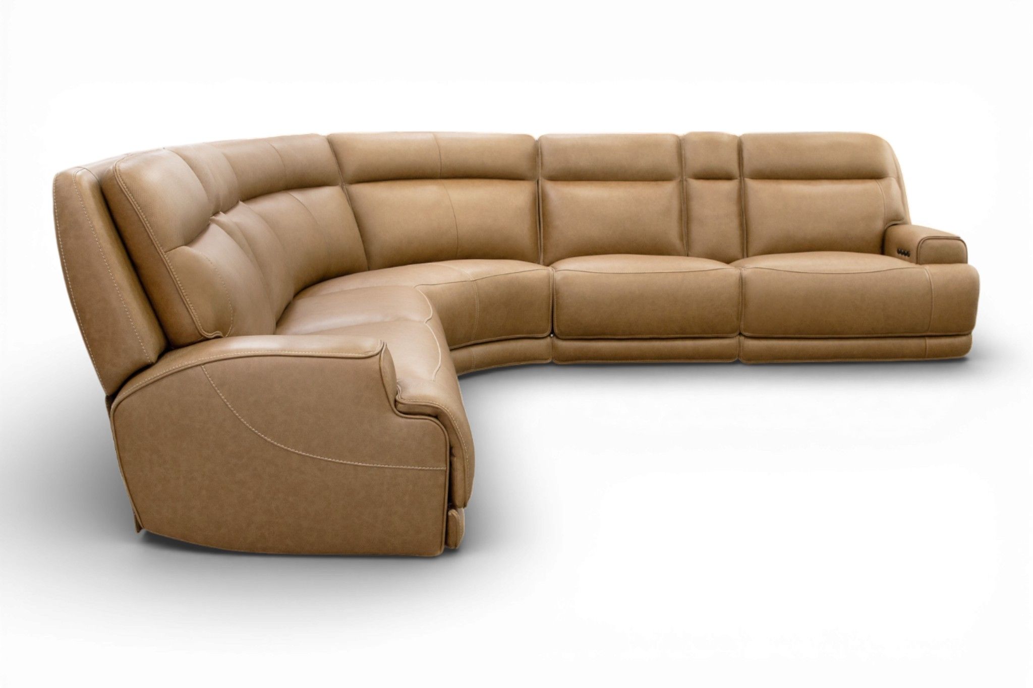 Upgrade your family movie nights with the Power Reclining Sectional. Made to be durable, stylish and absolutely functional, this power reclining sectional has everything that you need. The leather upholstery brings forward a sleek style that you'll love while also being more stain-resistant and long-lasting than fabric. For relaxing, all you need to do is push a button to lean back and kick your feet up while you watch your favorite shows and movies. This power reclining sectional also features drop-down tables that allow access to cupholders for your drinks and the audio controls for the speakers. Not only will your drinks be close by, but your devices will be close by too thanks to the USB ports on the armrests to keep everything charged.