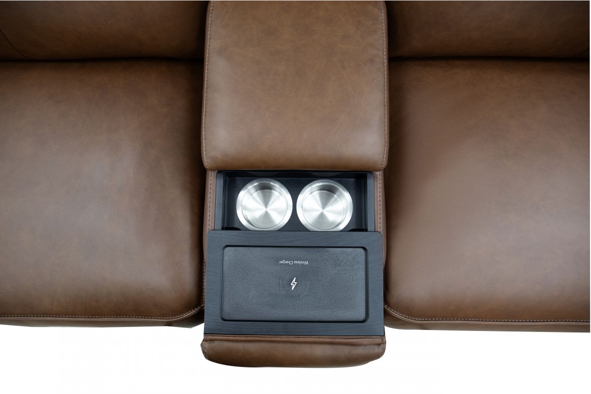 Embrace easy relaxation with this leather power reclining sectional. Perfect for those lazy days, you can lean back and kick your feet up with the push of a button and keep everything you need nearby thanks to the storage console, USB ports, and cupholders. Use the storage console to store the remotes you use and use either the USB ports or the wireless charging to keep your devices close by and charged. With this power reclining sectional, you'll experience true comfort and convenience.