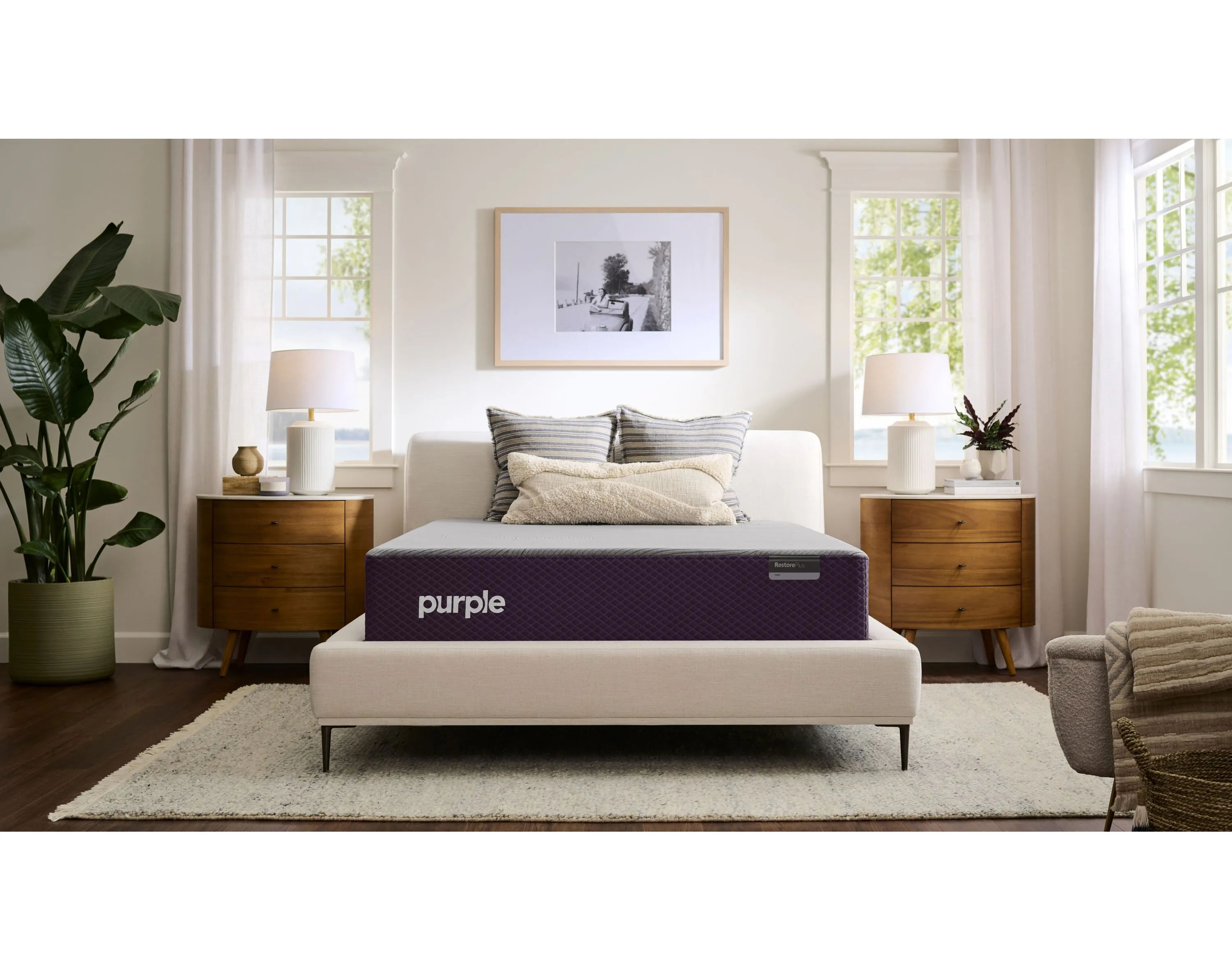 Enjoy upgraded comfort foam and responsive coil support for deep sleep with the Purple Restore Plus mattress.