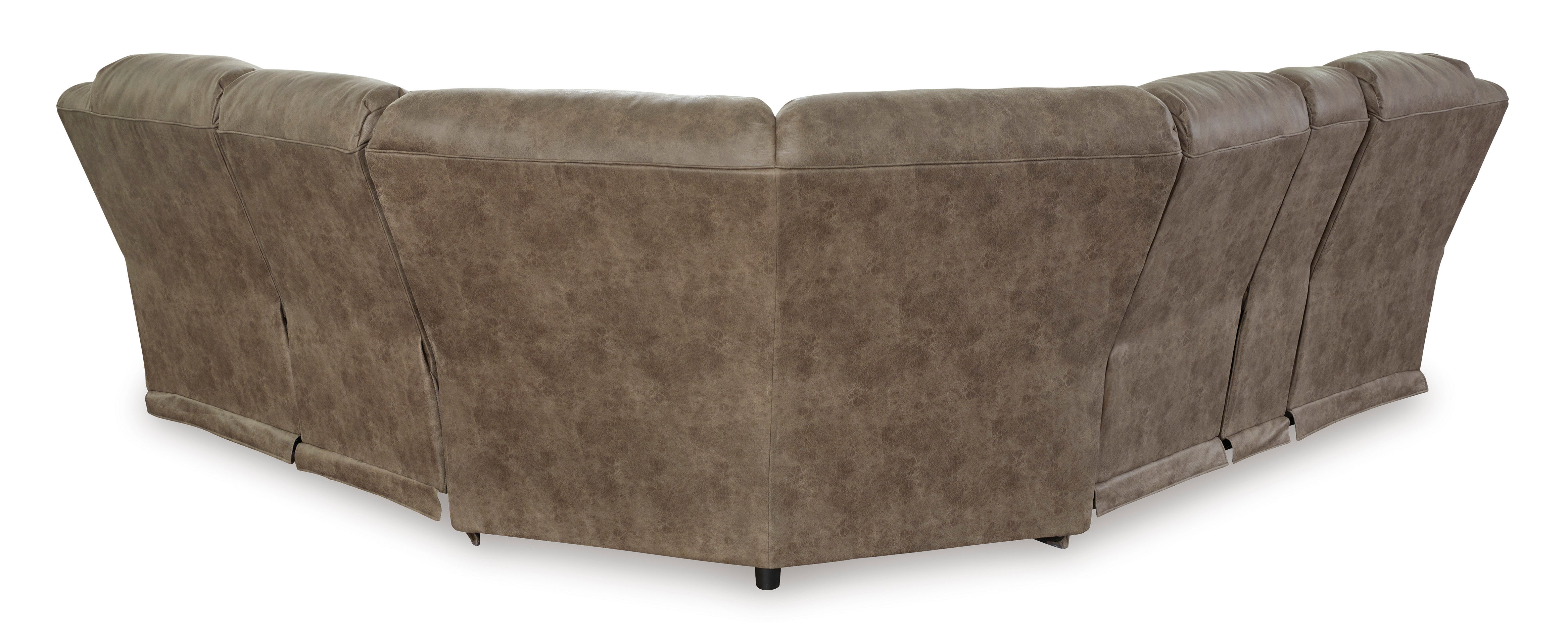 The Ravenel power reclining sectional is designed exclusively for those who are serious about R&R. Its overstuffed cushions and pillow top arms feel oh-so-plush, and the faux leather upholstery accented with jumbo stitching is silky soft. Go from upright to reclined relaxation with just one touch. A clever center console provides storage and keeps drinks at the ready.