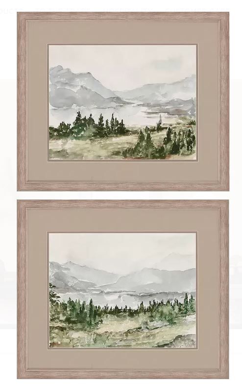 The forest landscape design on the Reservoir Wall Art Set of two showcases a casual style.