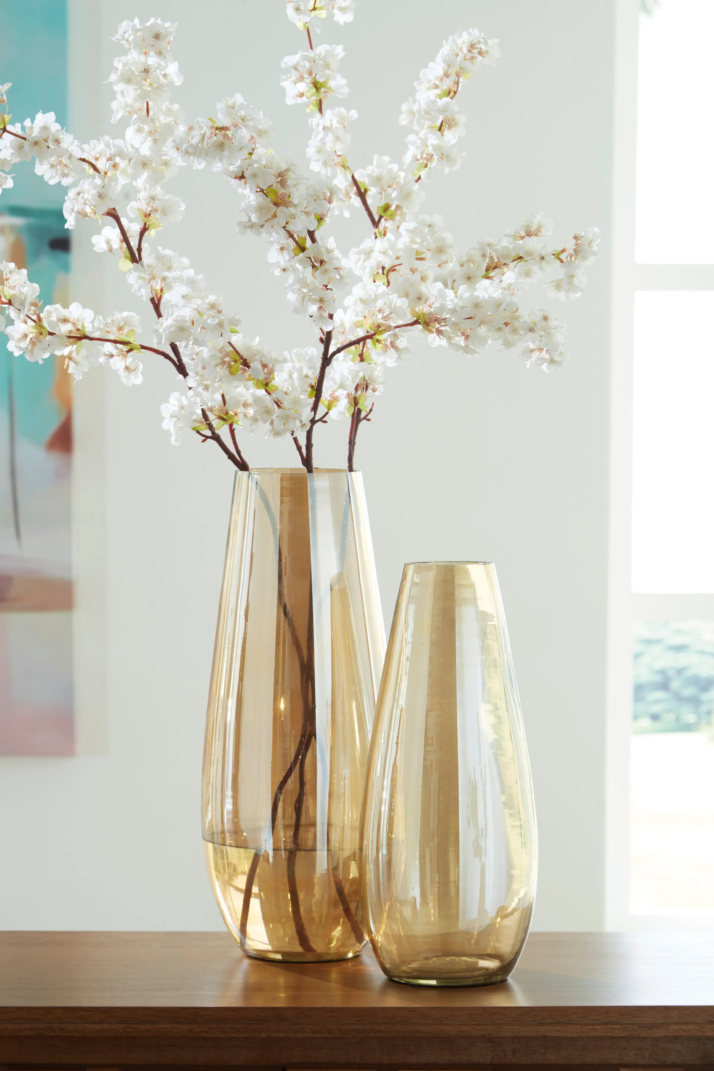 If you love contemporary style, you’re sure to find this vase stunningly on point. Its shimmering amber finish and sleek shape are a feast for the eyes. This show-stopping vessel is gorgeous unadorned or filled with your favorite blooms whether they're displayed indoor or outdoor.