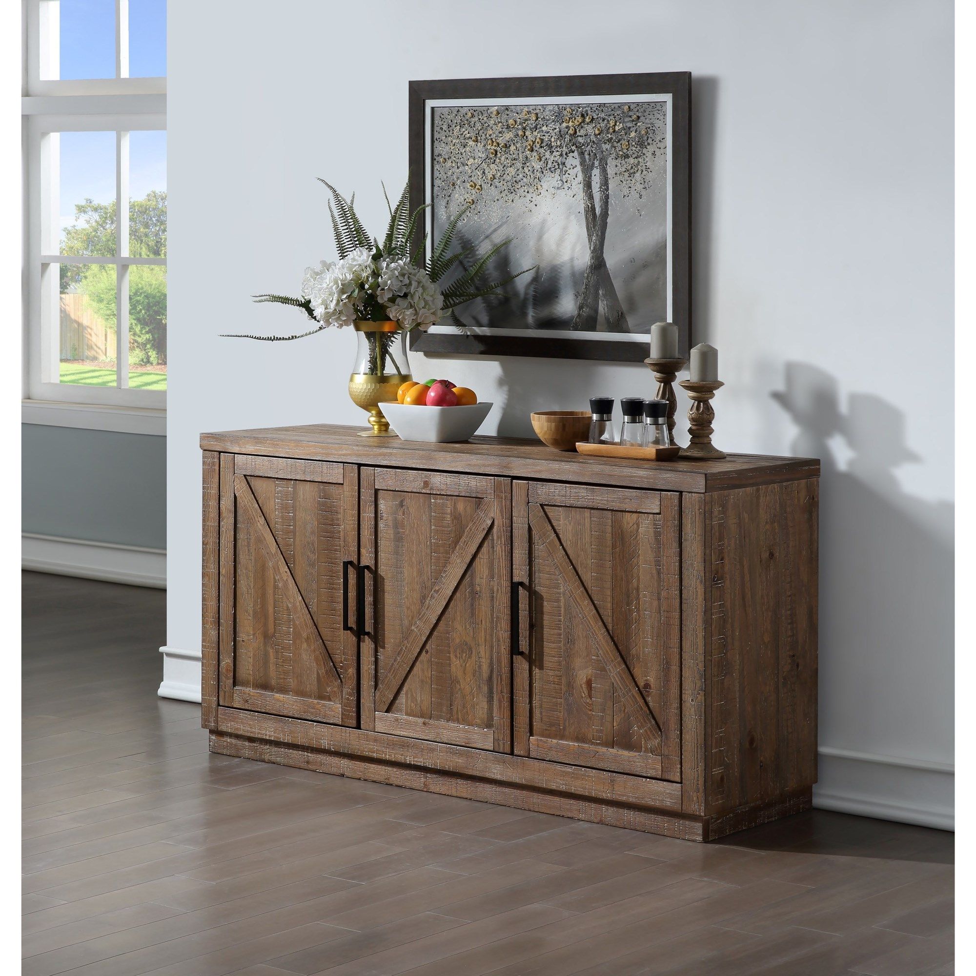A modern ranch style, the Riverdale server has a driftwood finish.