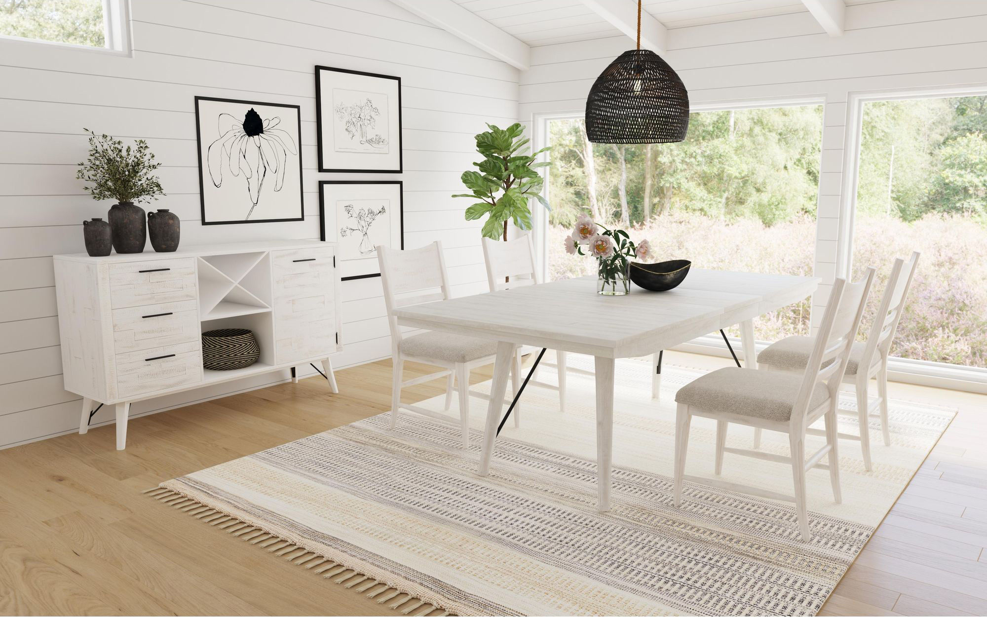 Embrace the modern farmhouse style of the Rogen Dining Chair in a distressed white finish.