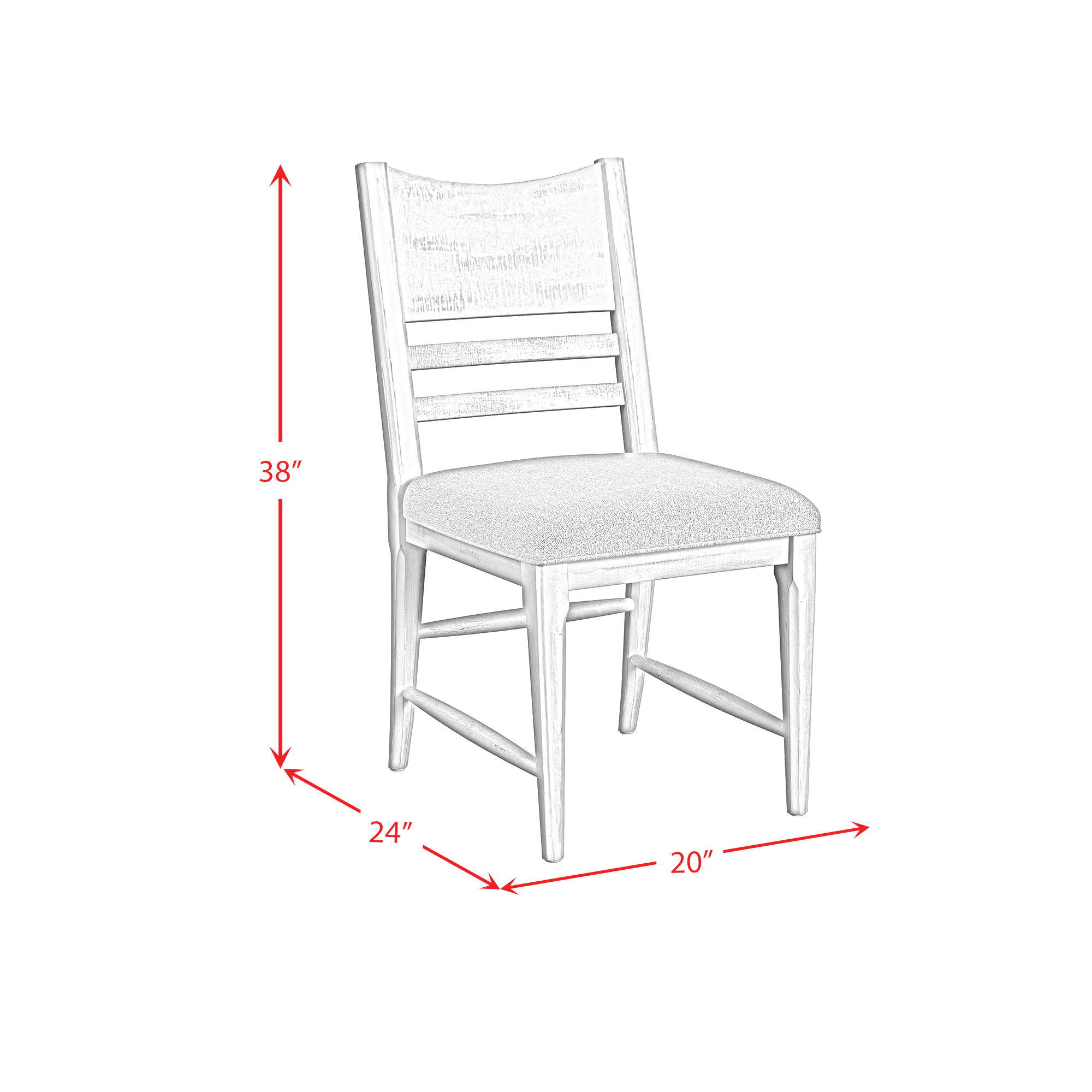 The distressed white finish on the Rogen Dining Chair will add a modern farmhouse style to your dining area. The ladderback design creates more visual interest and the gray fabric upholstery on the seat will add more comfort while you dine.