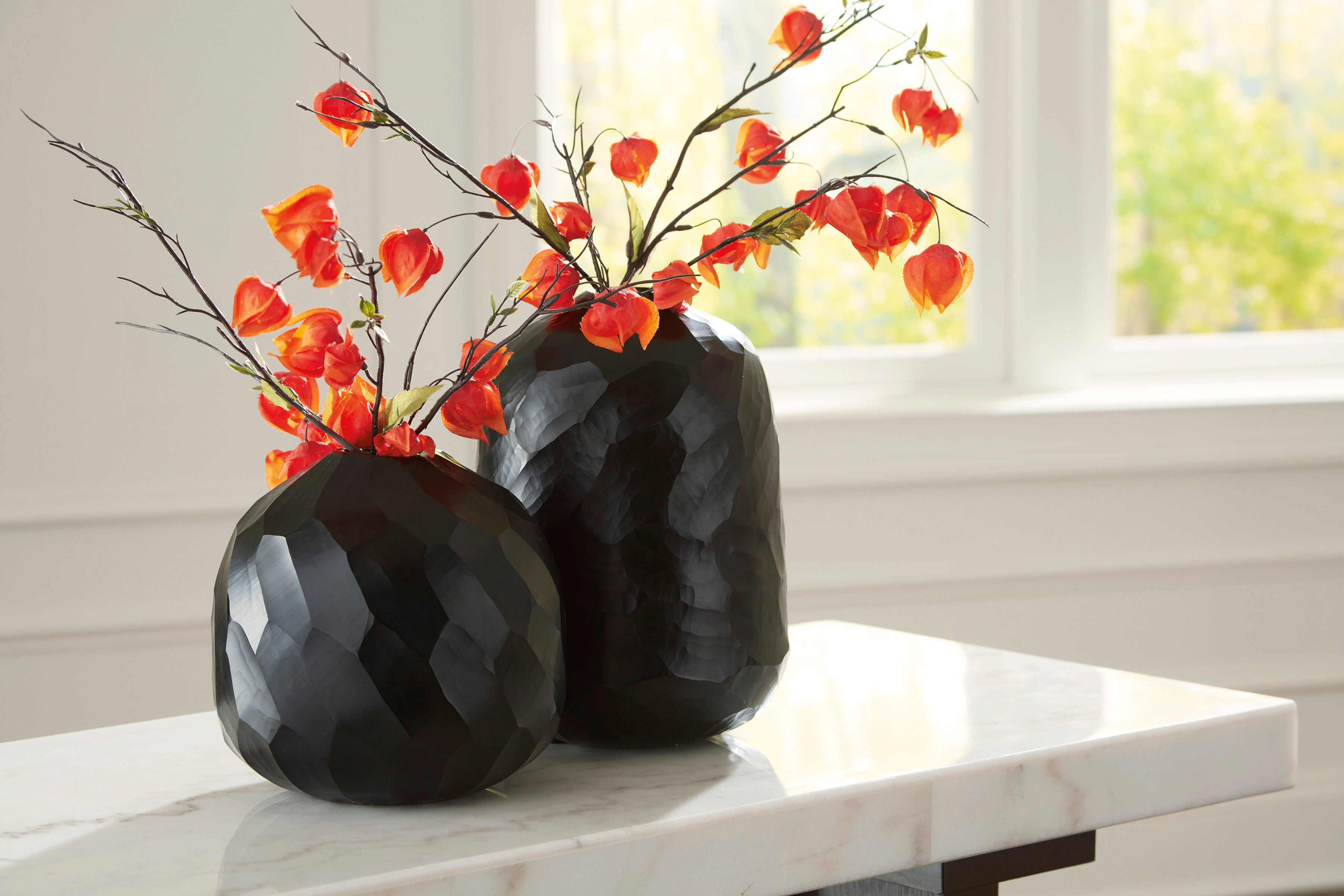 Put the accent on contemporary style with the Ryanford vase. Wowing with multiple hand-carved facets, the cool black glass delivers true textural appeal from every angle. It’ll bring an artful touch wherever you see fit.