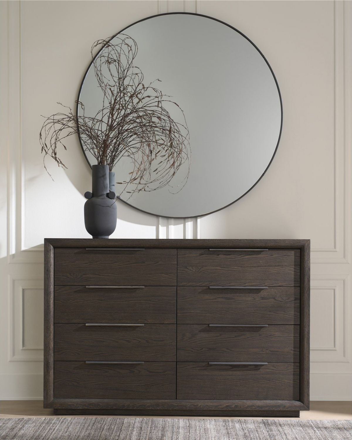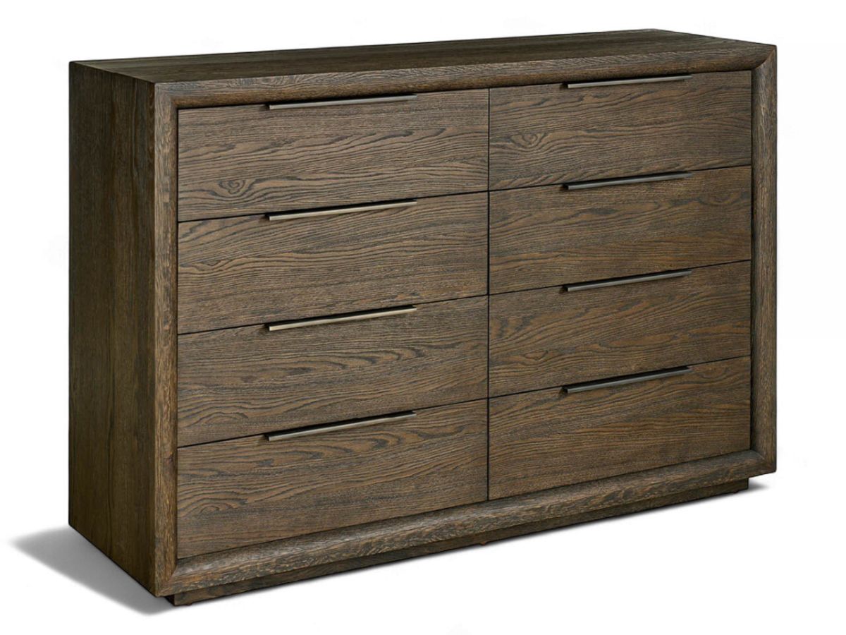 The sleek silhouette and dark wood finish of the Sable dresser enhance contemporary style.