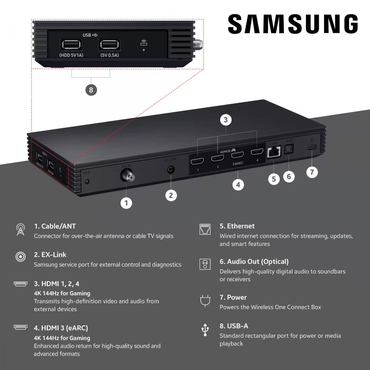• Samsung Vision AI: Welcome to a new era of television now the TV is tailored to you. Our AI processor enhances picture and sound quality, ensuring all your content is upgraded to stunning resolution with optimized audio. Plus, now you have the ability to interact with what you watch: get real time translations of what you're watching with subtitles in your language, control your TV with hand motions while wearing a Galaxy Watch, and more.