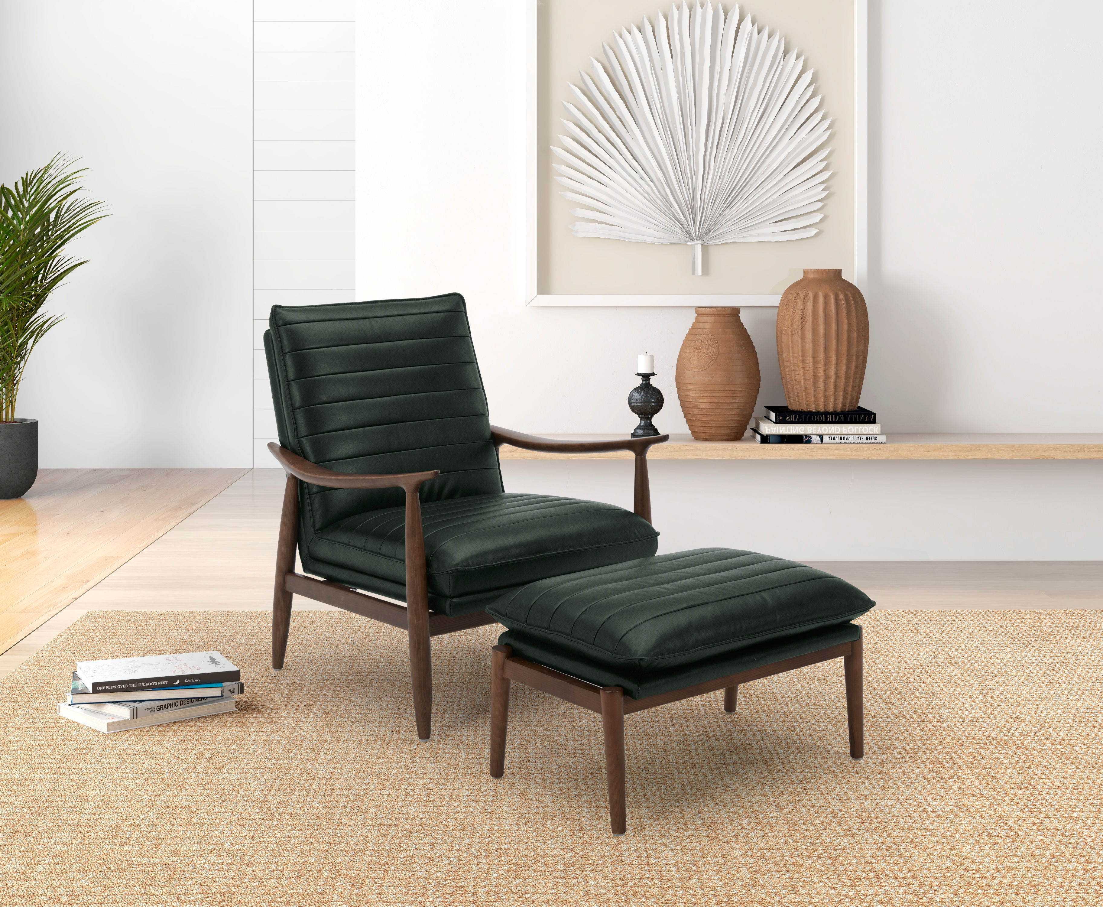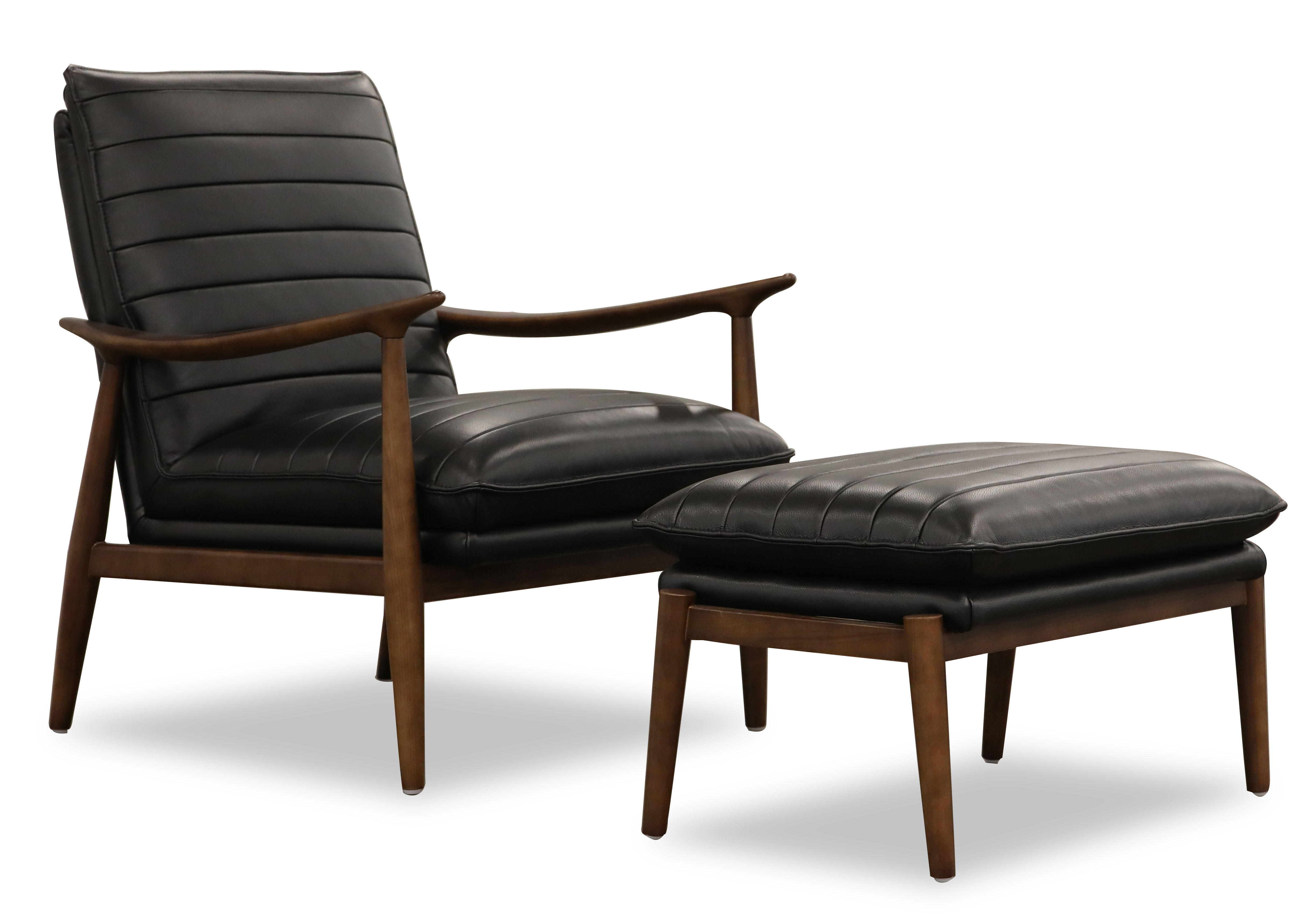 Traditions of craftsmanship and mid-century design are boldly redefined in the leather Sasha ottoman. Inspired by the evolution of 20th Century designs, iconic American architecture, and American design movement, this black accent ottoman with wooden legs features a great amount of style and will draw eyes in your living space.