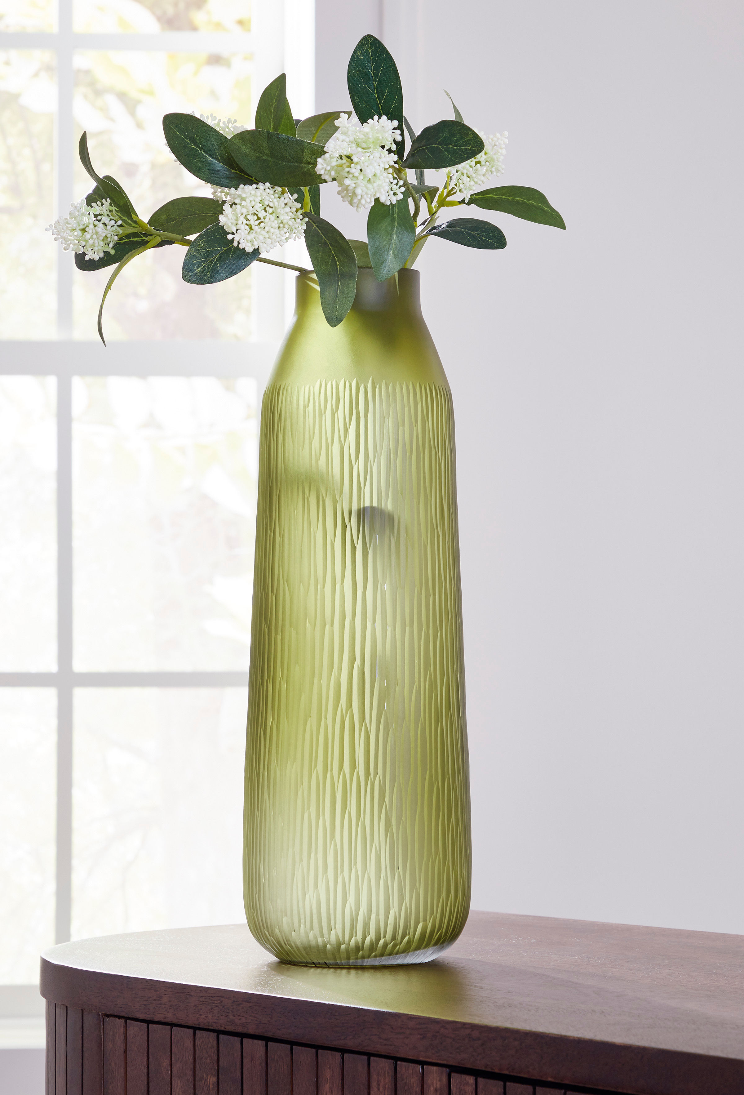 Elevate indoor and outdoor spaces with the Scottyard vase in an olive green finish.