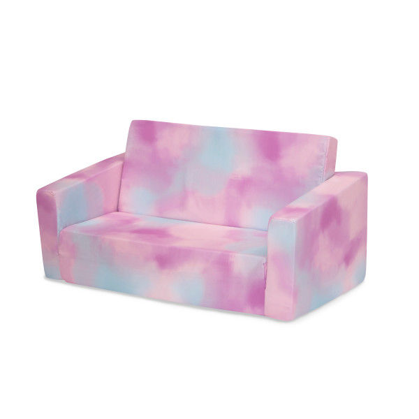 The Cozee Flip-Out 2-in-1 Convertible Sofa to Lounger by Delta Children is a cozy chair by day, laid-back lounger by night. This convertible seat easily flips open to reveal multiple ways for your child to relax--they’ll love to sit and read or watch their favorite movies on the chair but when it’s time for a nap, this seat folds out into a comfy sleeper bed. Big enough to fit three small kids comfortably in sofa mode, it’s light enough to move around the house and is ideal for your children to share during playtime or sleepovers. The super-soft slipcover with easy-to-reach side pocket is treated with Scotchgard stain release finish to resist stains, ensuring the sofa looks beautiful for years to come! The supportive foam construction will keep its shape and provides all-day comfort. Designed to ship in a super-small box, this lightweight foam kids’ sofa and lounger may take up to 24 hours to fully expand once unboxed. Machine-washable slipcover zips off for easy cleaning. Recommended for ages 18 months+.