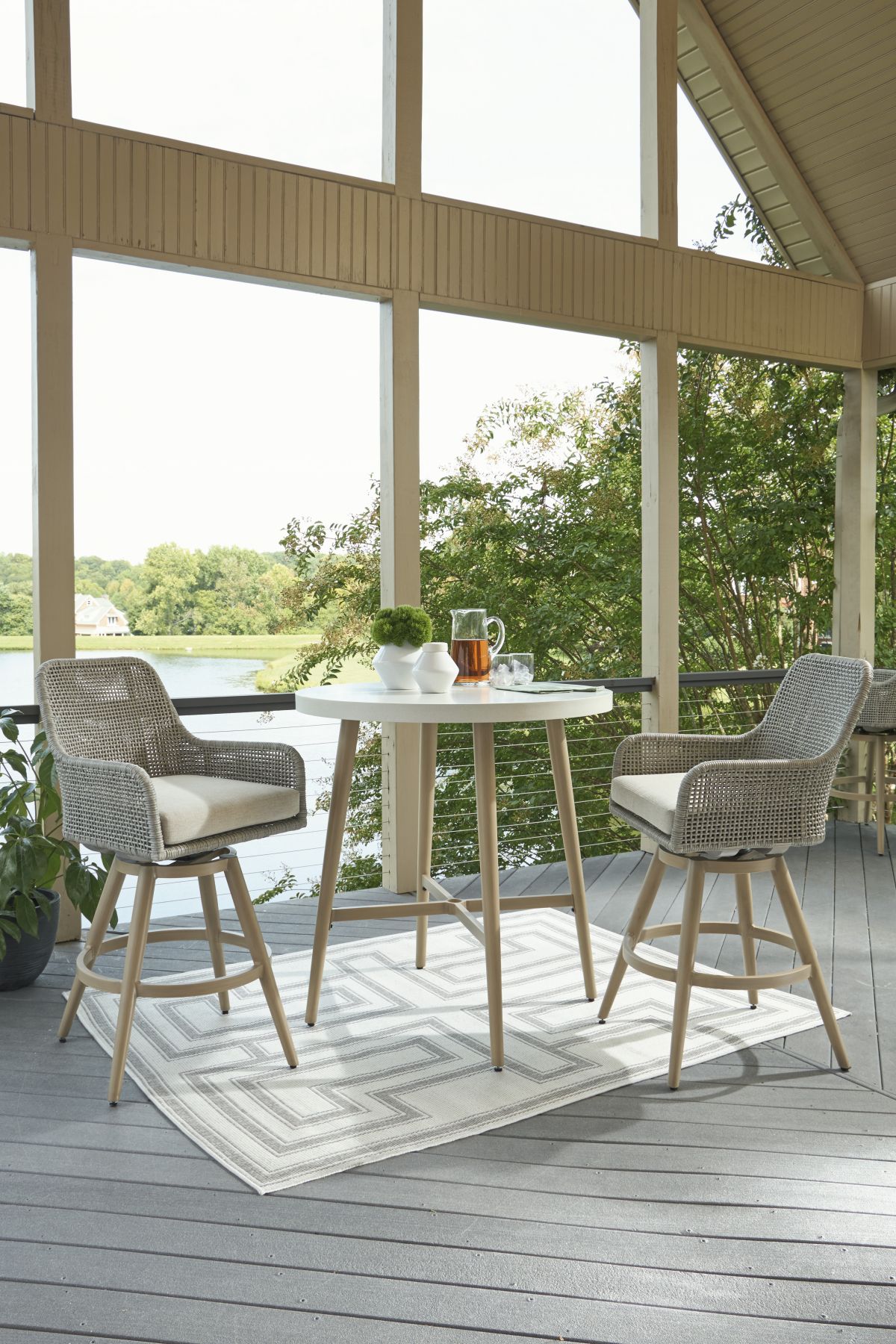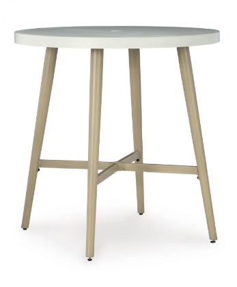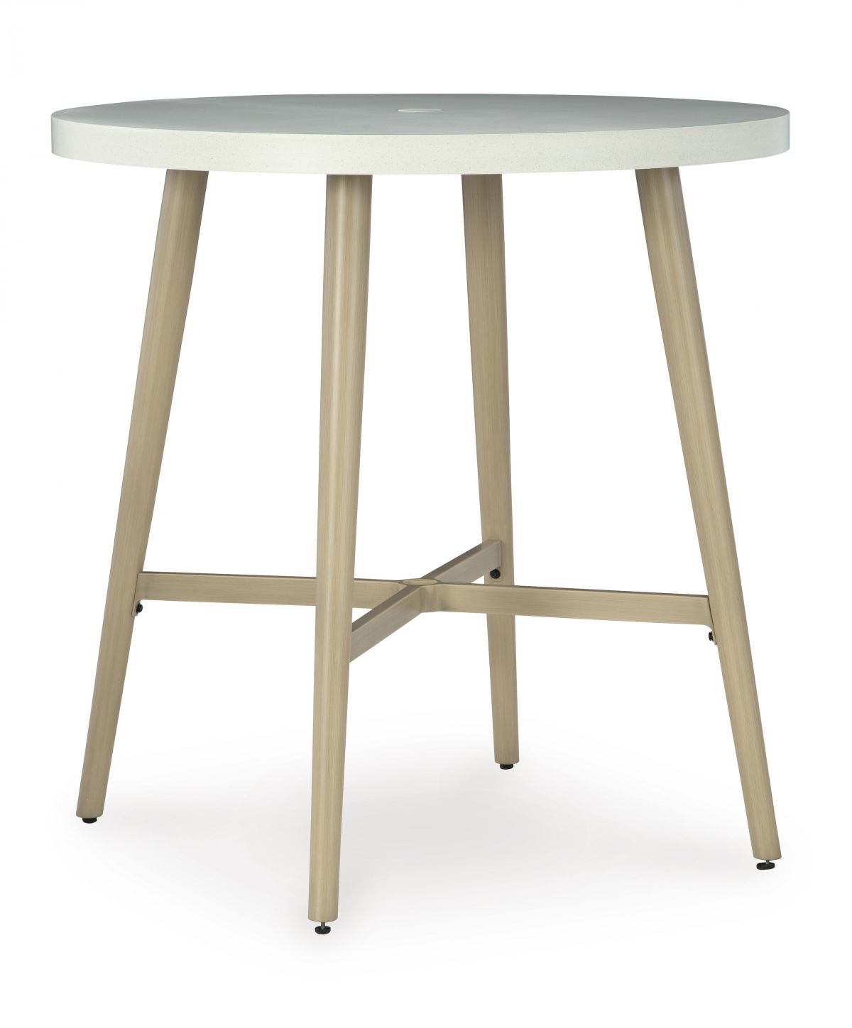 This bar table invites your casual contemporary style outdoors. With an elegant sintered stone top, it expertly marries refined design with durability. At this table, breezy summer mornings and cold winter nights are made all the more enjoyable.