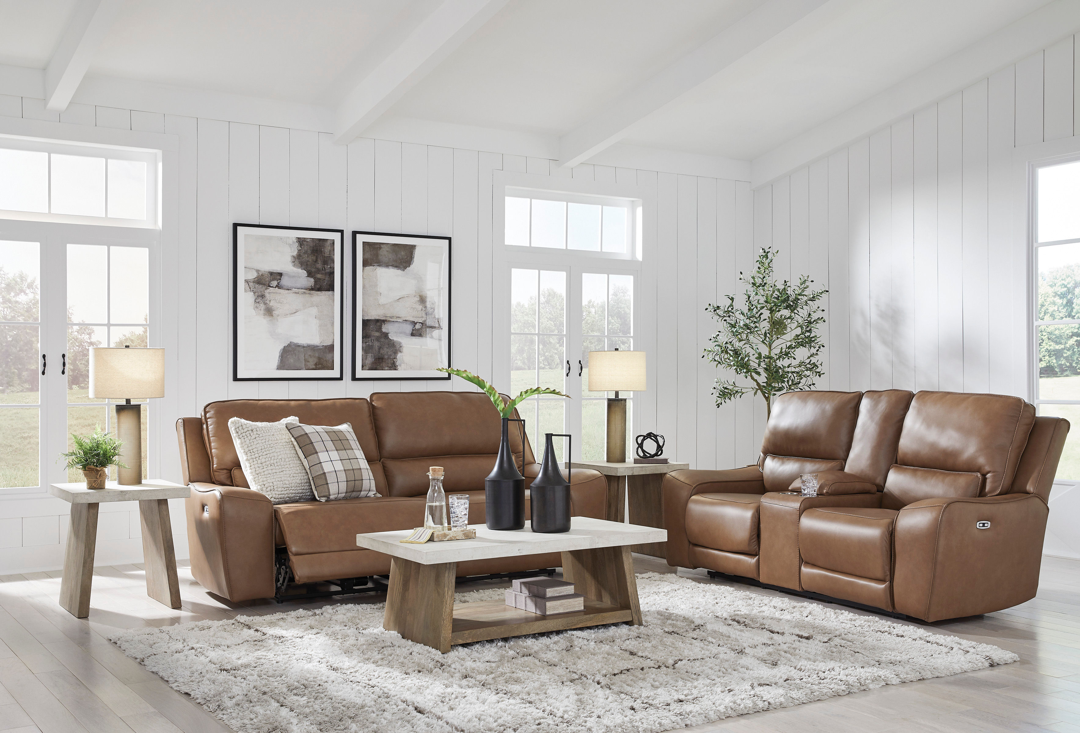 Live and lounge luxuriously. This power reclining loveseat brings an ultra-stylish flair to your home’s central hub. Its seating area is wrapped in top-grain leather in a rich caramel coloration, giving you a trend-right look made all the better with high-quality materials. And with the simple push of a button, you can recline or adjust the headrests to find your ideal comfort position.