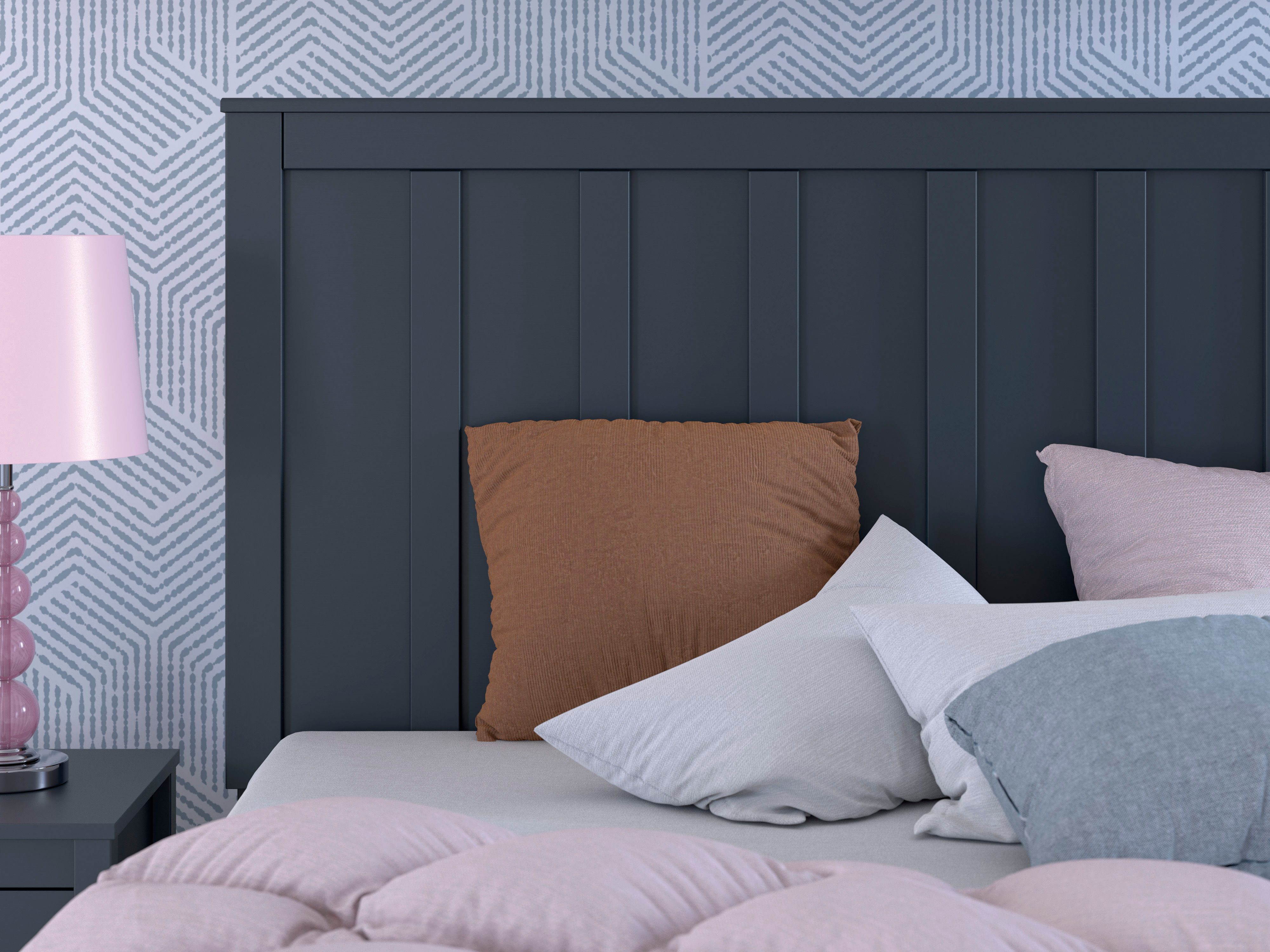 A casual design with a navy blue finish, the Simmenfort full size panel headboard is sleek and simple.
