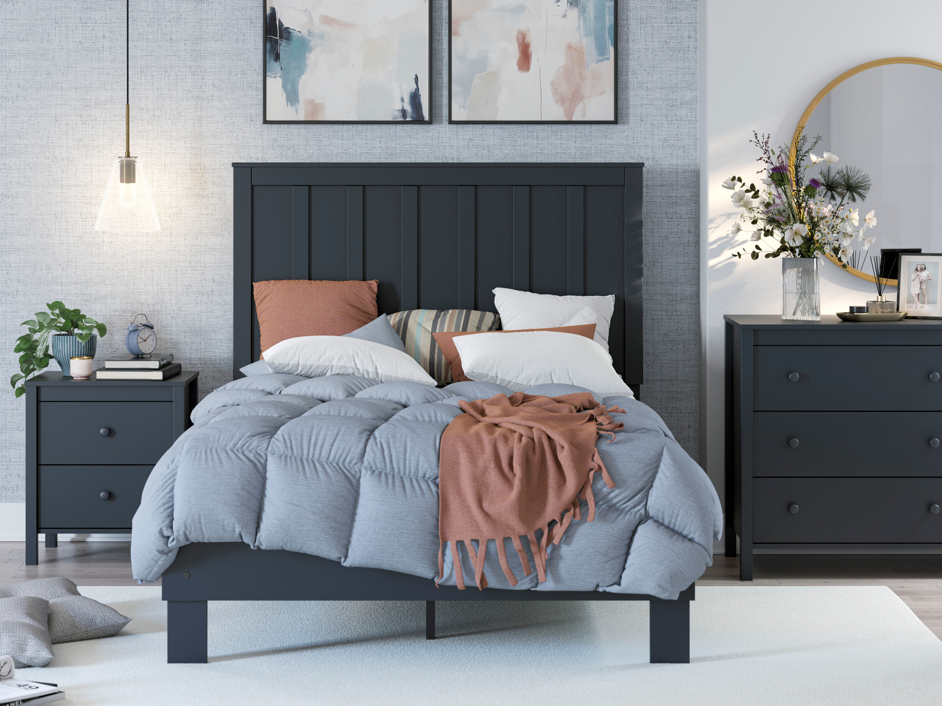 A casual design with a navy blue finish, the Simmenfort nightstand is sleek and simple.