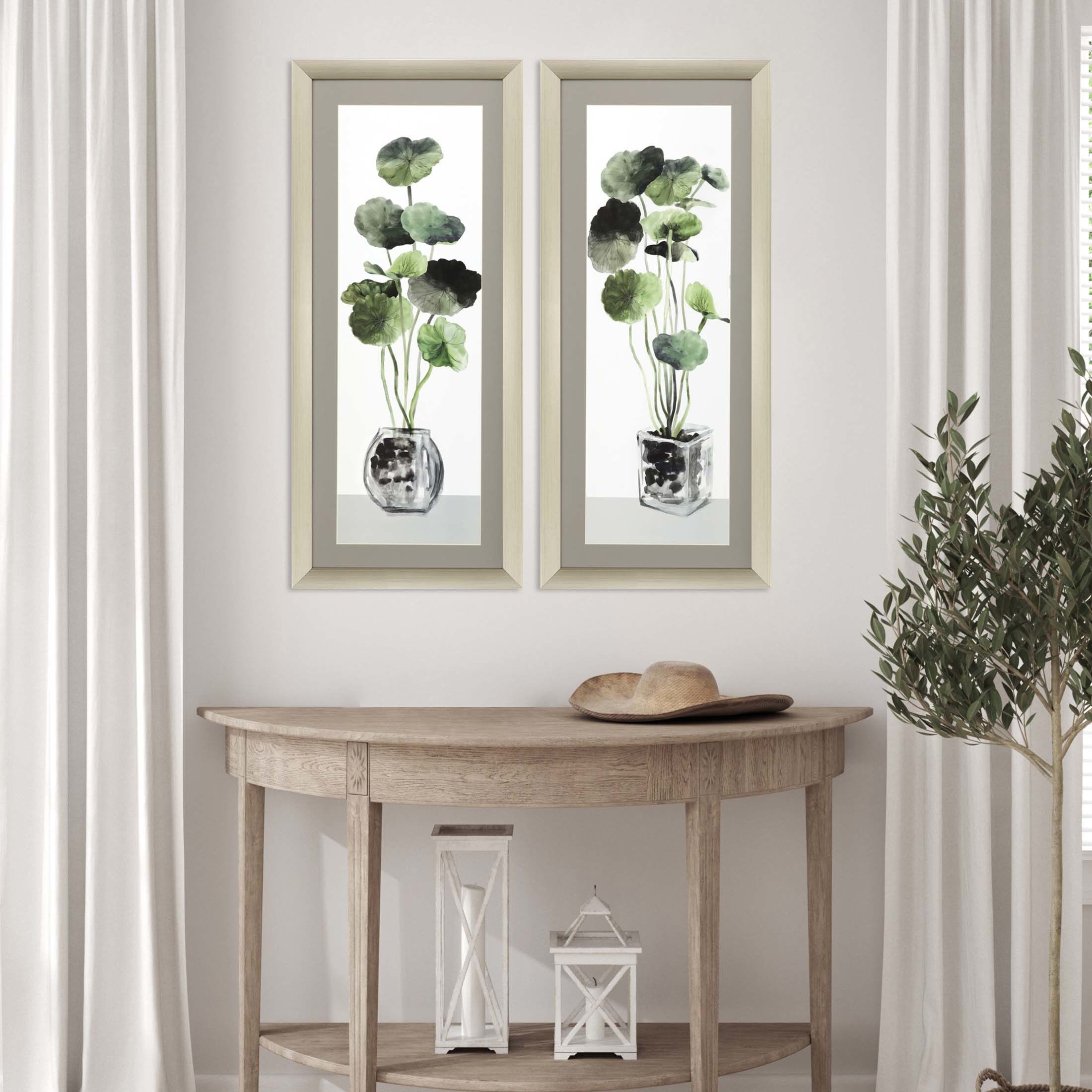 Verdant green leaves with a black planter, this Simple Glass Wall Art Set of two will add a casual style to your home.