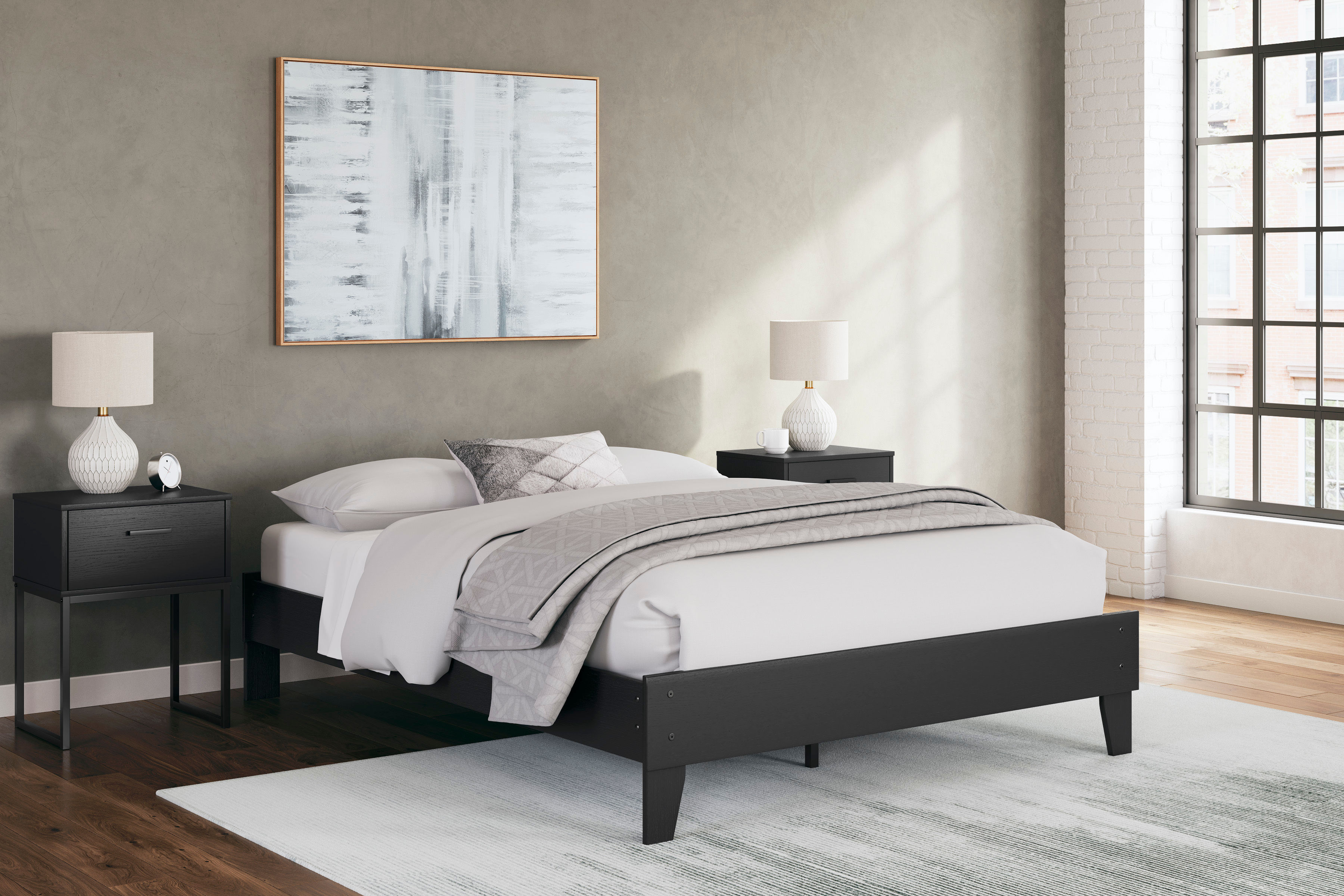 • Queen platform bed (does not include headboard)