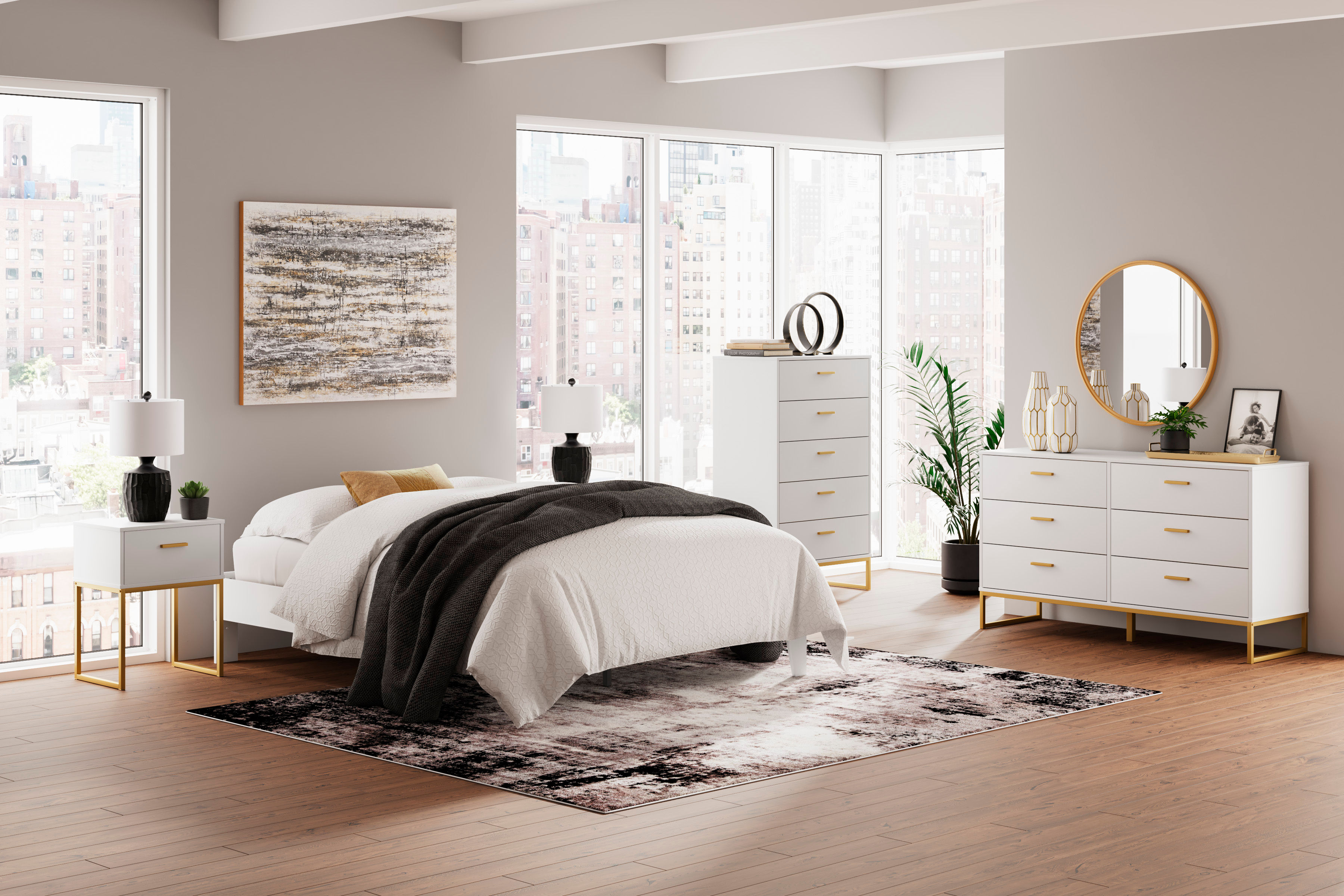• Queen platform bed (does not include headboard)
