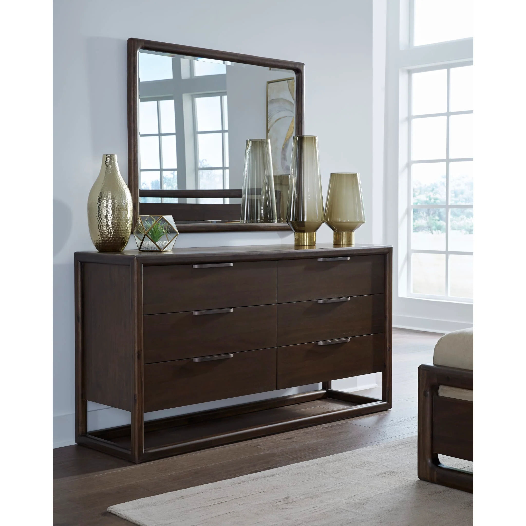A modern design, the Sol dresser and mirror features a rich brown stain and low sheen lacquer.