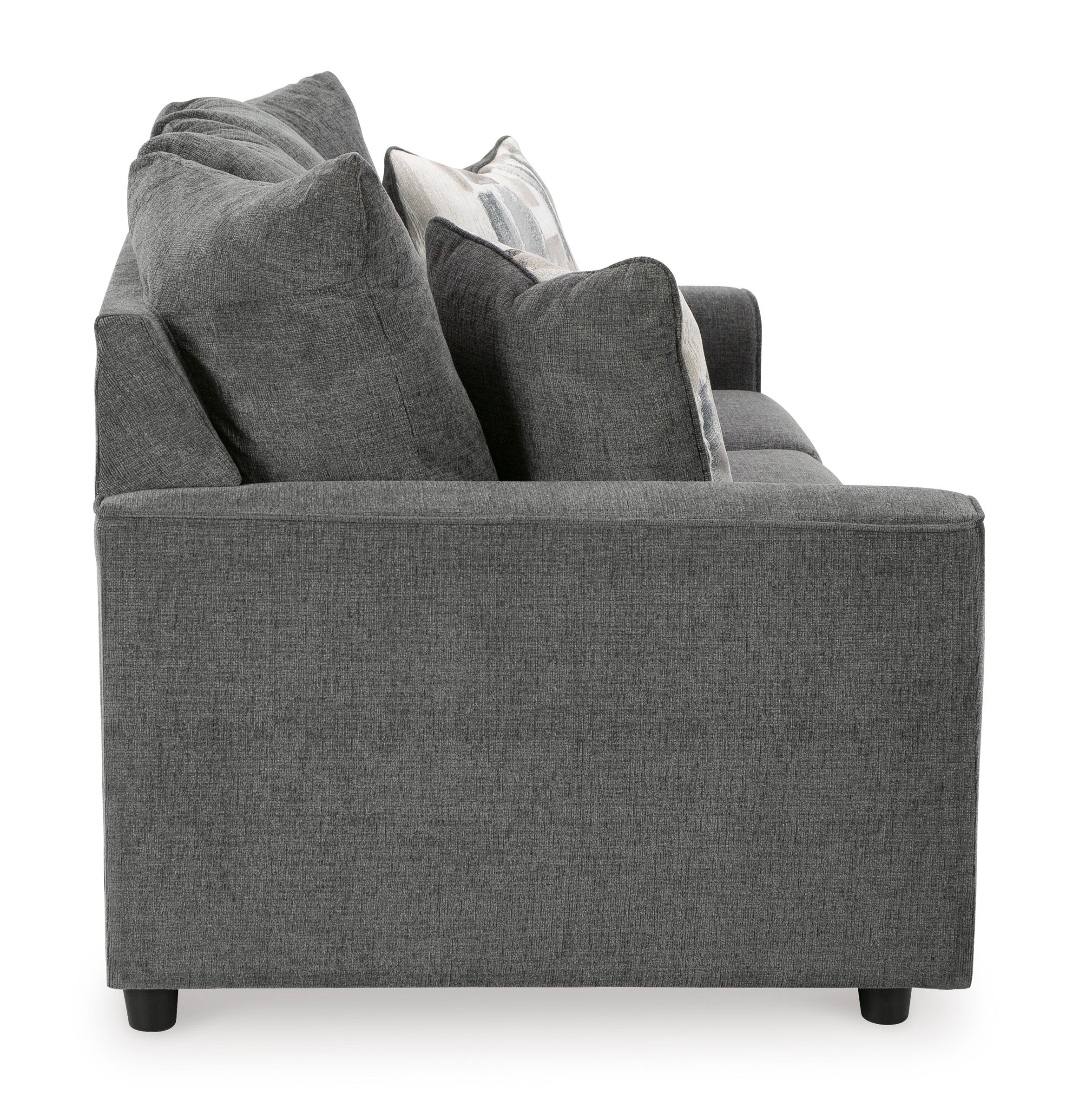 What’s new in neutrals? Shades of gray, of course. Embrace the sophisticated design trend with the gorgeous Stairatt sofa, which offers a clean-lined, contemporary style at a comfortably cool price. Sure to lift your spirits, the plush chenille fabric is fabulously neutral. Contemporary flared arms give it a distinctive flair. This sofa also arrives with two cool brushstroke accent pillows to elevate the taste and comfort level.