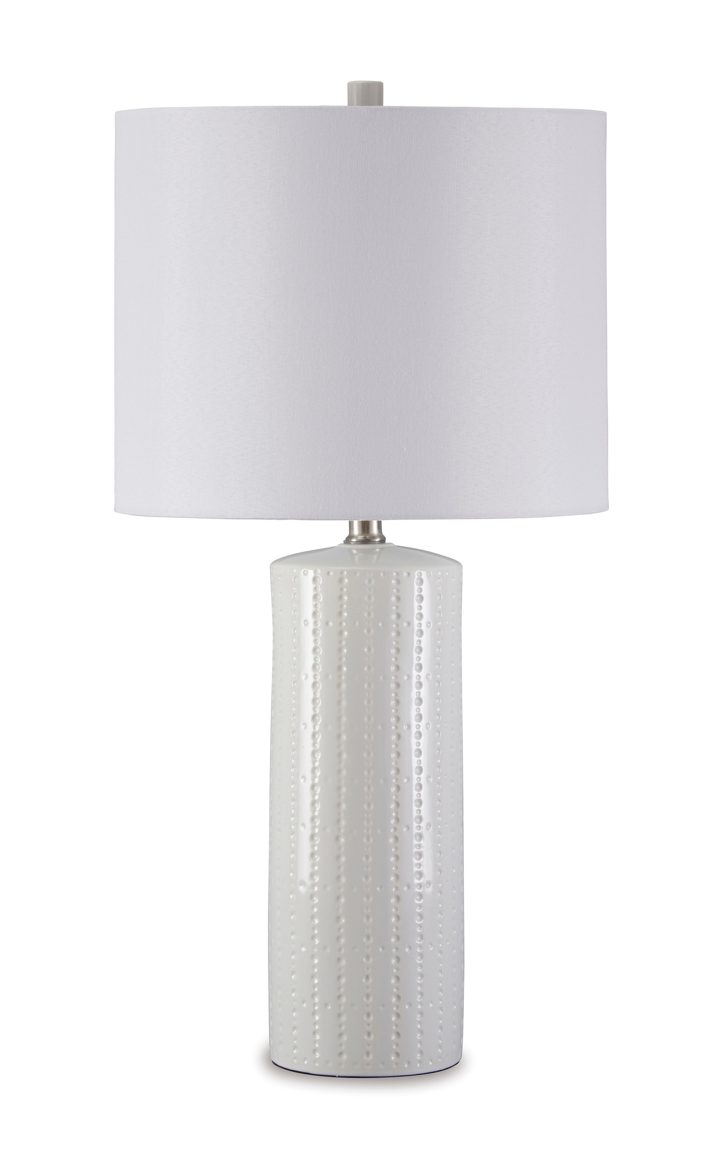 • Made of ceramic with drum hardback fabric shade