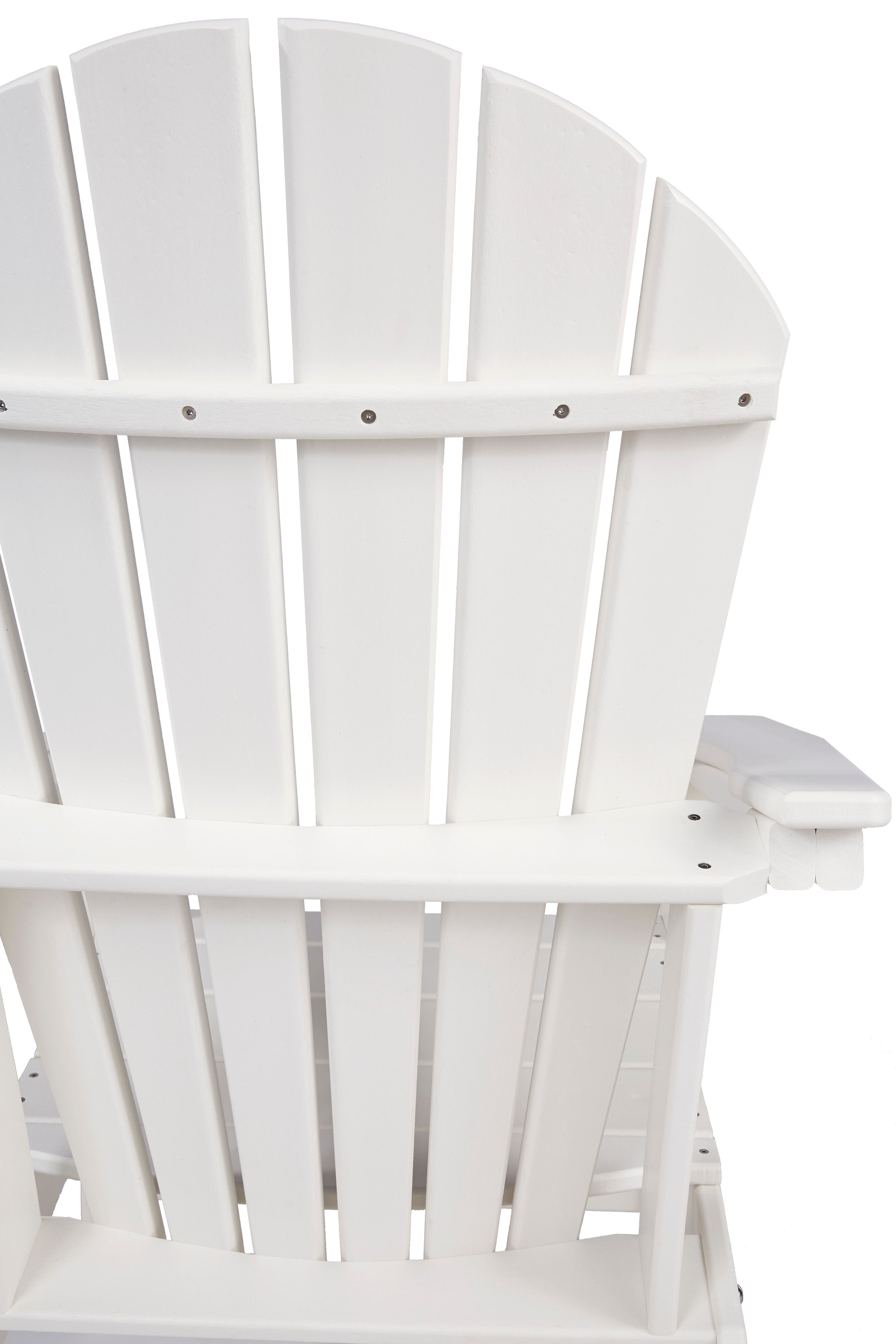 Add cottage-quaint charm to your outdoor oasis with the Sundown Treasure Adirondack chair in white. Made of MEGA TUFF™ high-density polyethylene material, it’s sure to weather the seasons beautifully. Designed to shed rainwater, the chair’s slatted styling with shell back shaping provides exceptional form and function.
