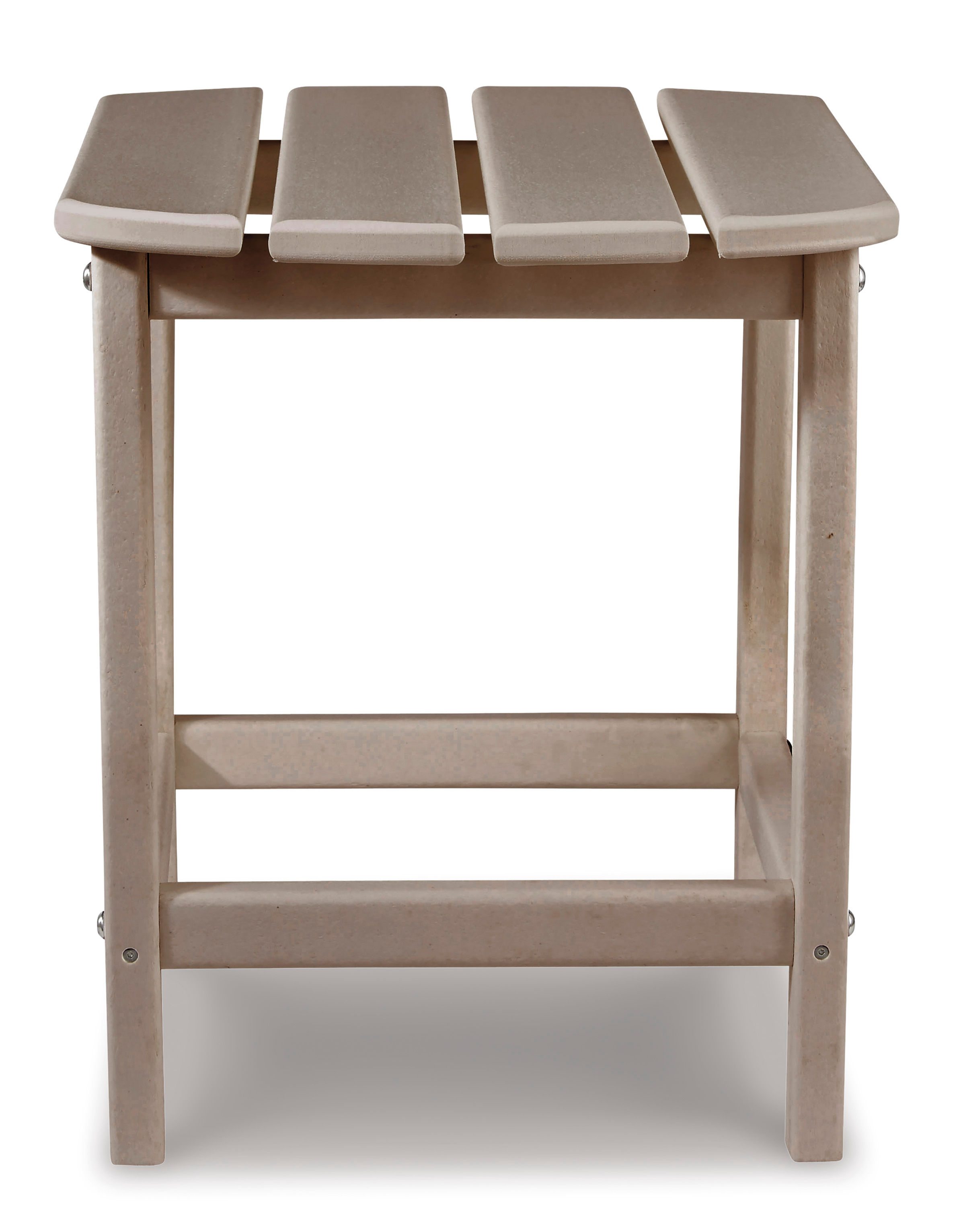 Add cottage-quaint charm to your outdoor oasis with the Sundown Treasure outdoor end table in a driftwood finish. Made of MEGA TUFF™ high-density polyethylene material, it’s sure to weather the seasons beautifully. Designed to shed rainwater, the table’s slatted top with gently rounded corners provides exceptional form and function.