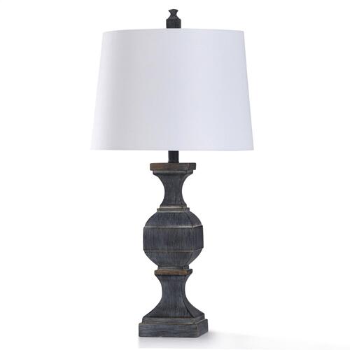 The stylish gray finish of this table lamp merges modern farmhouse style with a traditional design.