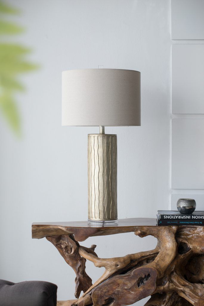 Discover the contemporary style of the gold finish with a vertical wave detail with this Table Lamp.