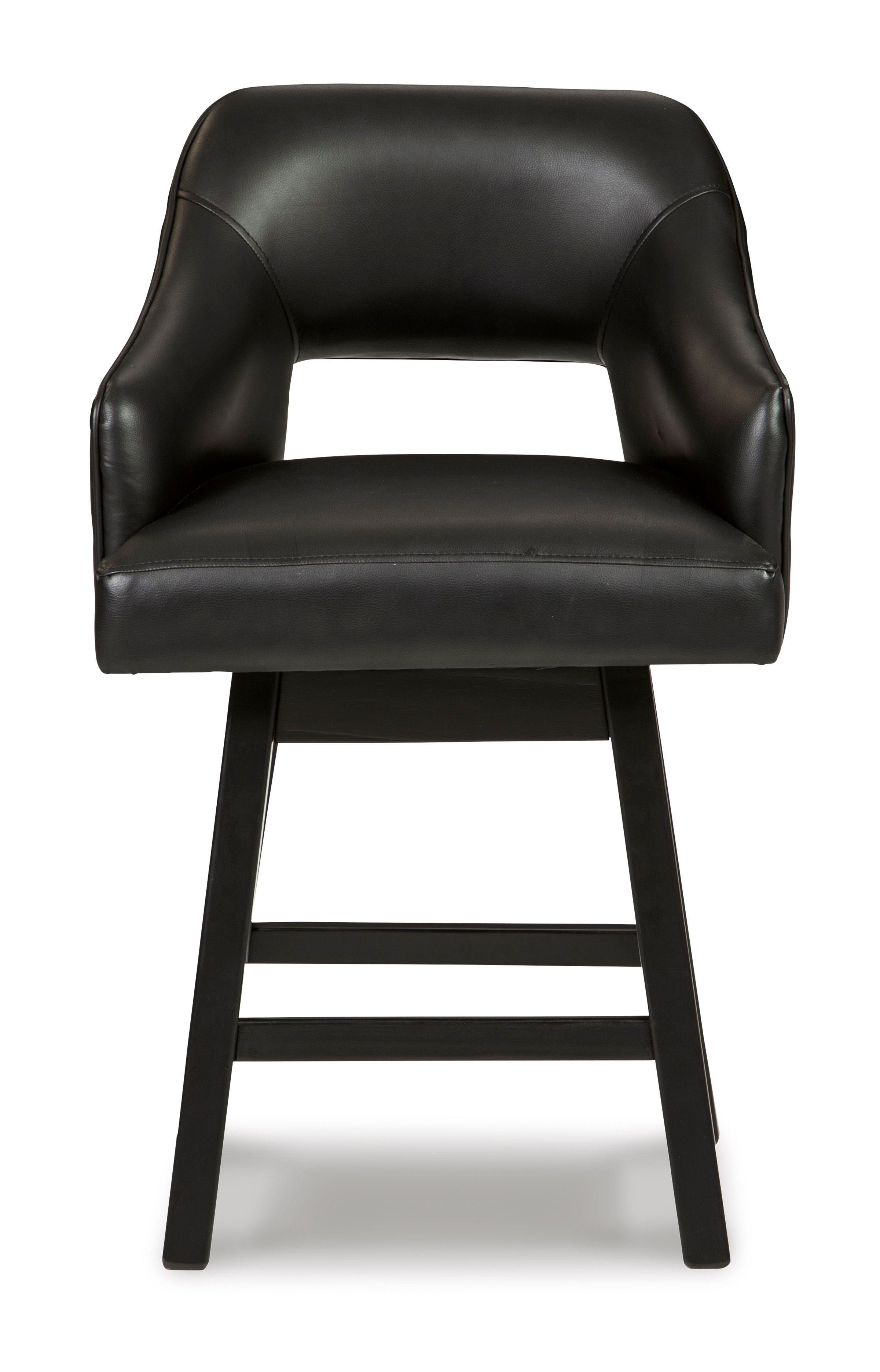 The Tallenger barstool invites you to take contemporary modern style for a spin. Comfortably cushioned seat, self-returning swivel and contoured back make it beautifully in tune with your needs. Luxurious faux leather upholstery is a sensational touch.
