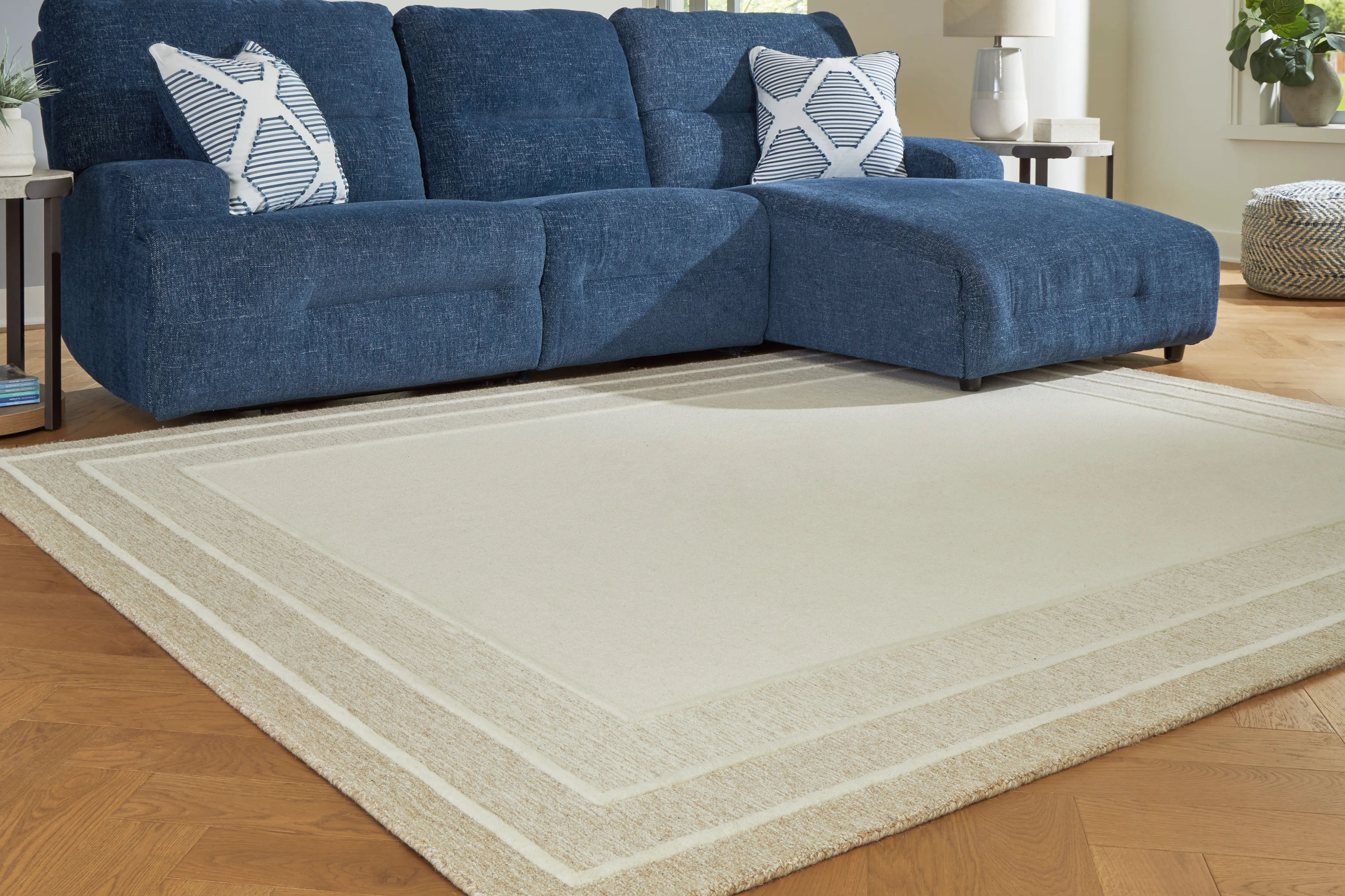 With its simple border design and soft, neutral color palette, this hand-tufted rug brings a touch of casual elegance to your abode. Its plush wool pile feels luxuriously soft underfoot—perfect for adding warmth and texture to your entertainment area, bedroom or entryway.